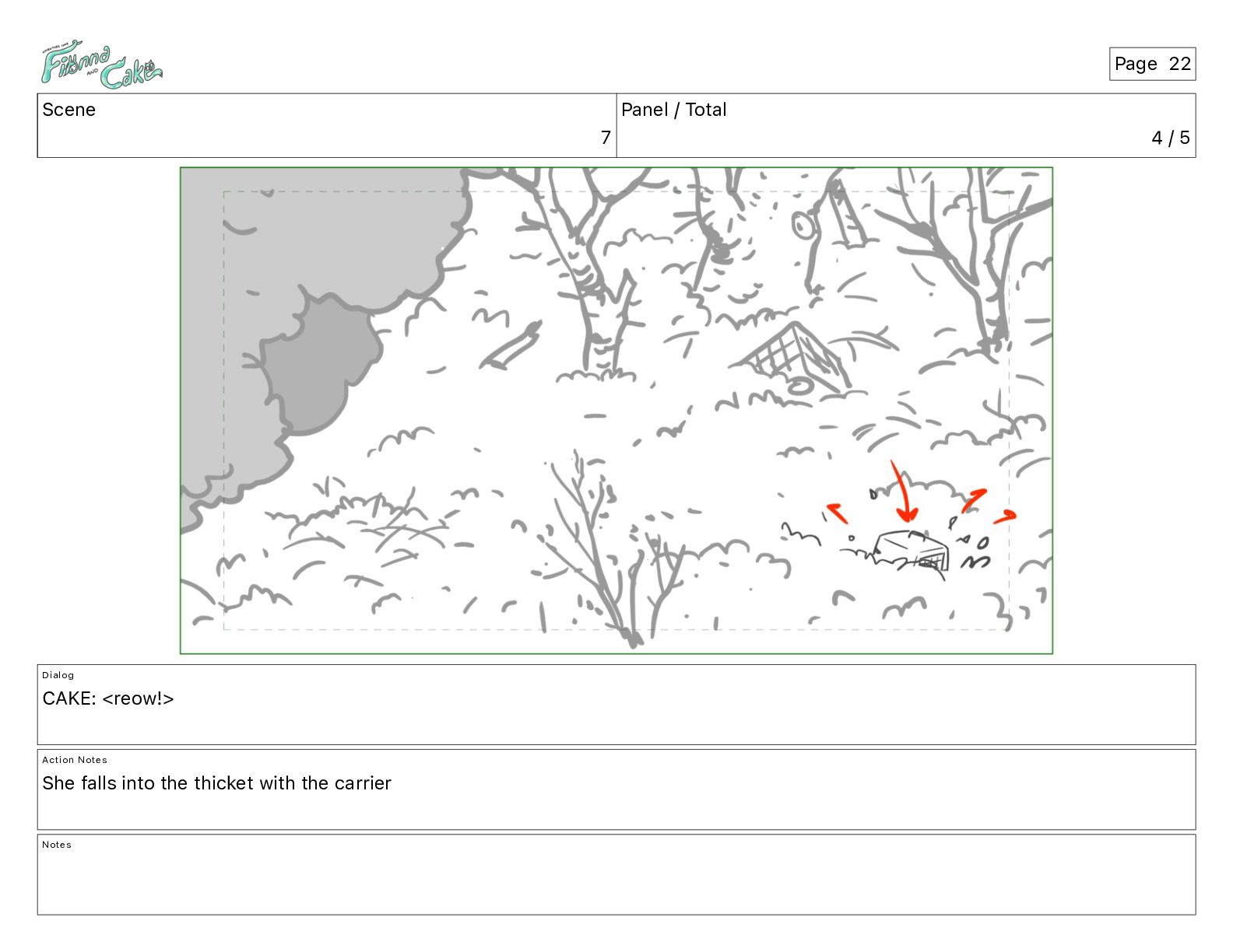 <reow!> Action Notes She falls into the thicket with the carrier Notes Page 22