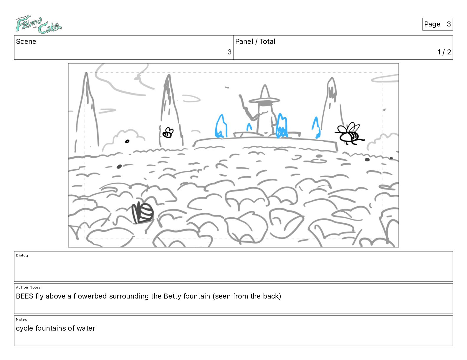 Notes BEES fly above a flowerbed surrounding the Betty fountain (seen from the back) Notes cycle fountains of water Page 3