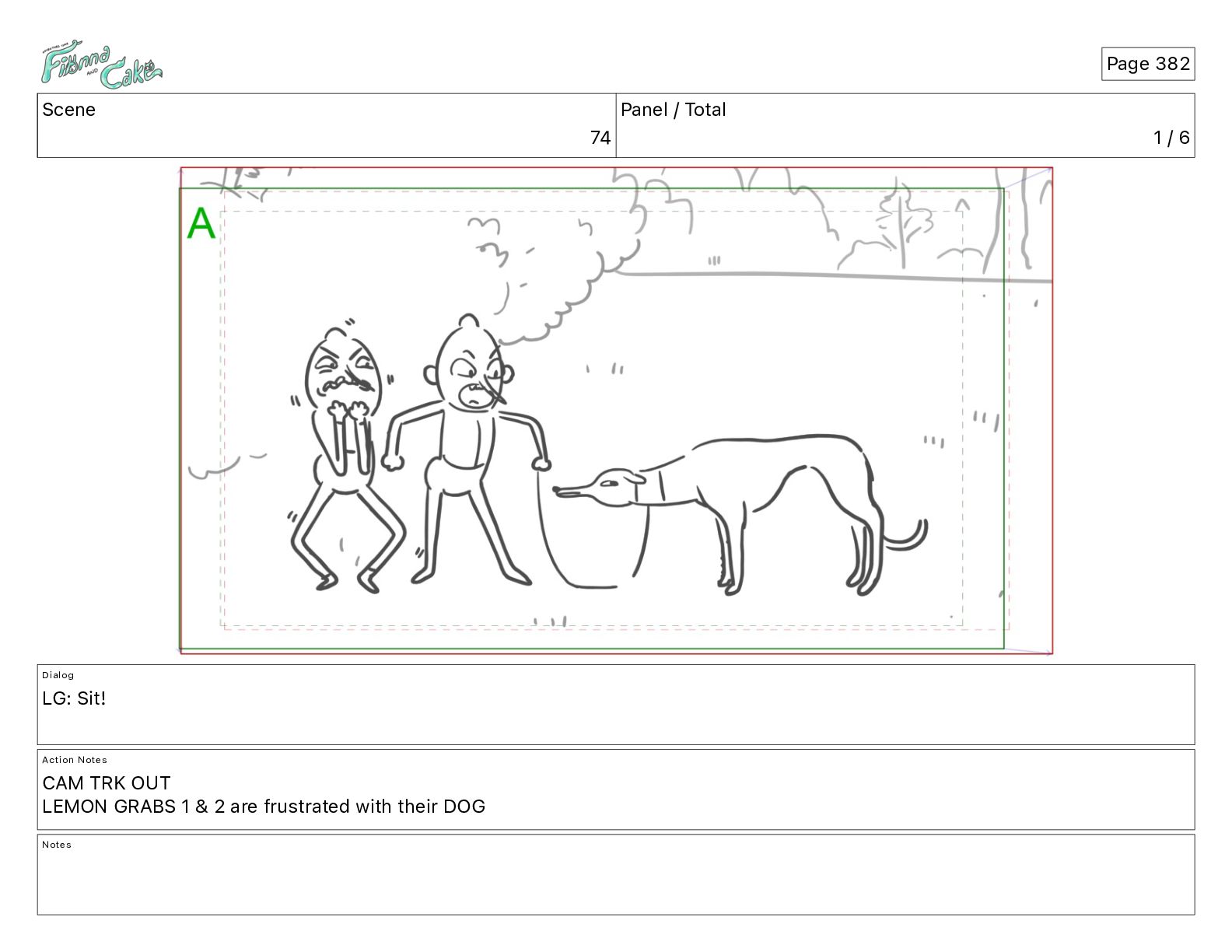 Sit! Action Notes CAM TRK OUT LEMON GRABS 1 & 2 are frustrated with their DOG Notes Page 382