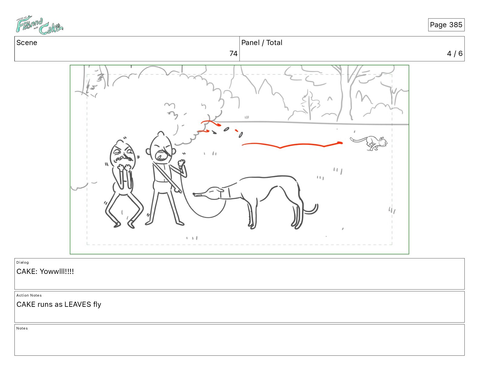 Yowwlll!!!! Action Notes CAKE runs as LEAVES fly Notes Page 385