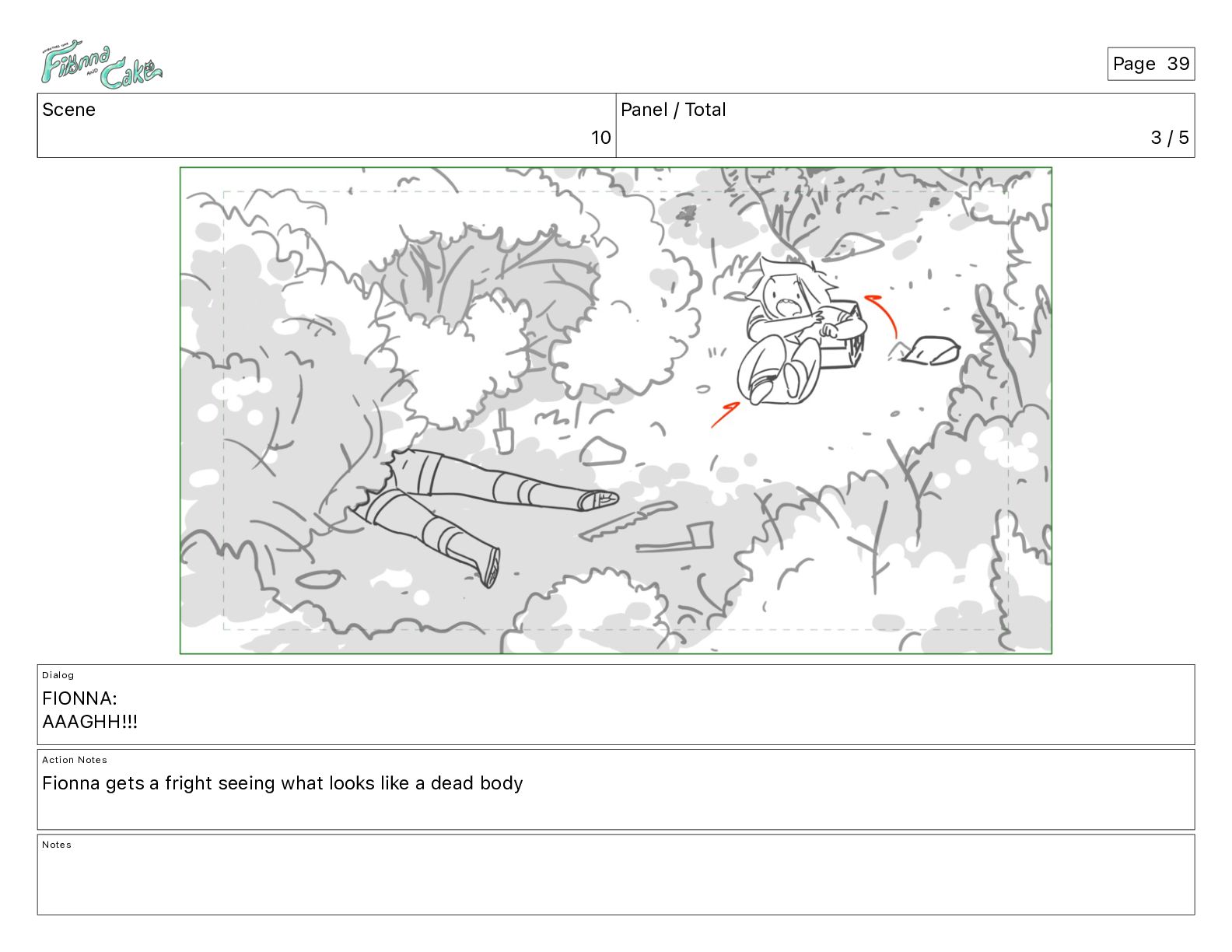 AAAGHH!!! Action Notes Fionna gets a fright seeing what looks like a dead body Notes Page 39
