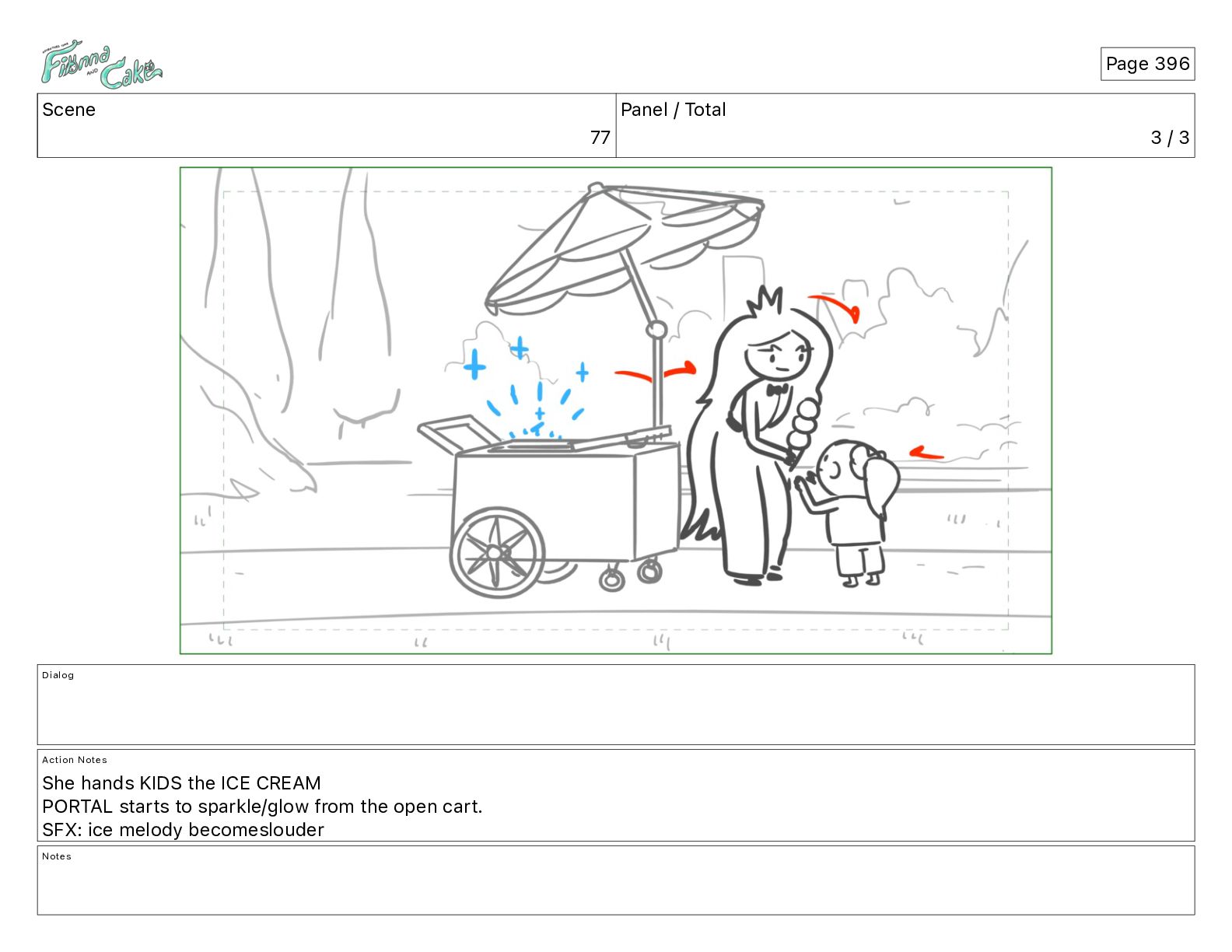 Notes She hands KIDS the ICE CREAM PORTAL starts to sparkle/glow from the open cart. SFX: ice melody becomeslouder Notes Page 396