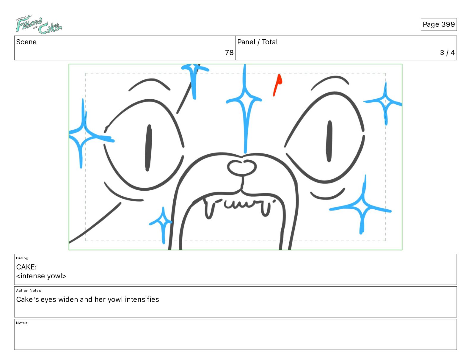 <intense yowl> Action Notes Cake's eyes widen and her yowl intensifies Notes Page 399