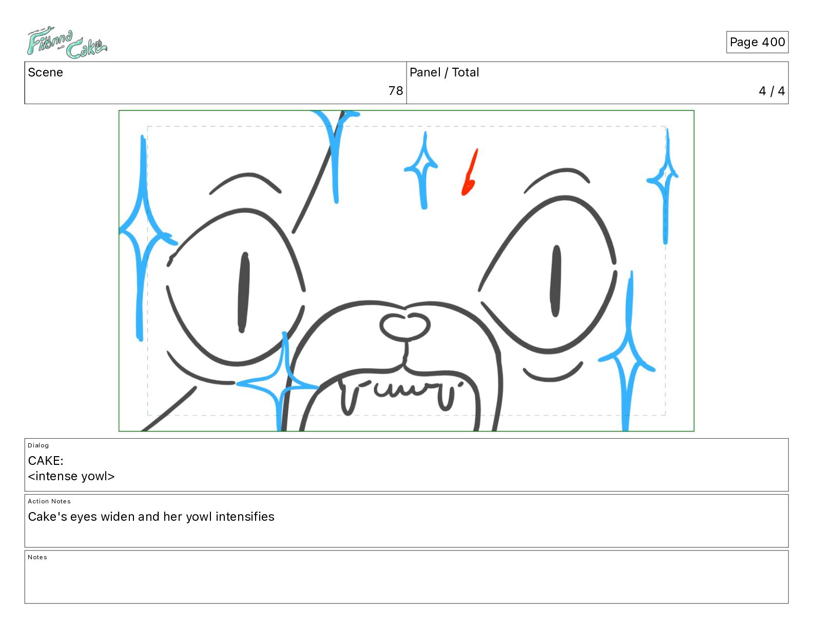 <intense yowl> Action Notes Cake's eyes widen and her yowl intensifies Notes Page 400