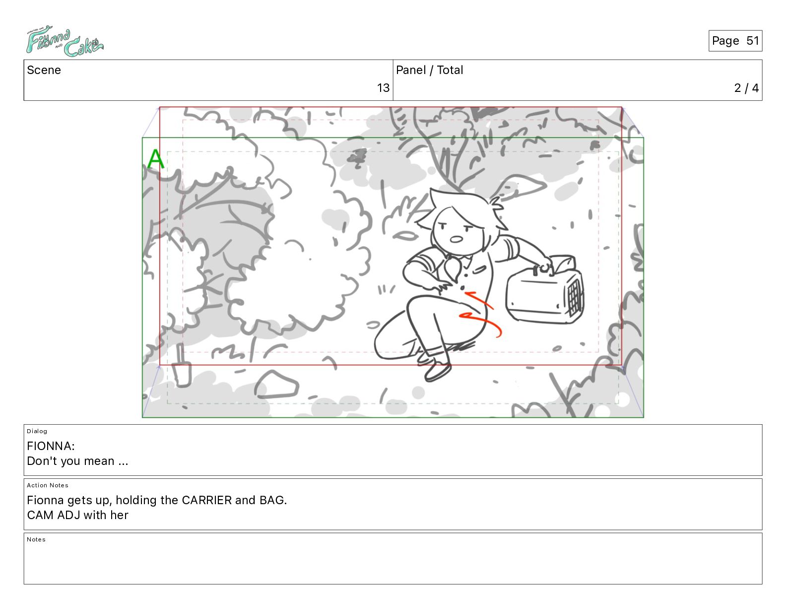 Don't you mean ... Action Notes Fionna gets up, holding the CARRIER and BAG. CAM ADJ with her Notes Page 51