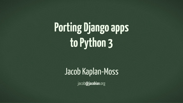 Porting Django apps to Python 3 Jacob Kaplan-Moss