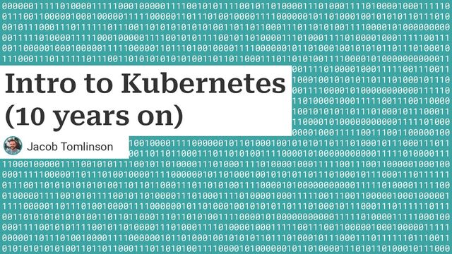 Google July 2015 Kubernetes 1.0 release Summer 2015 We built a weather data visualisation pipeline on Kubernetes September 2015 I wrote my first blog post that mentioned Kubernetes October 2015 My First Tech Exeter Talk March 2016 I presented our weather pipeline project at the first KubeCon Europe March 2015 Met Office Informatics Lab was formed and I began experimenting with Docker and container tooling