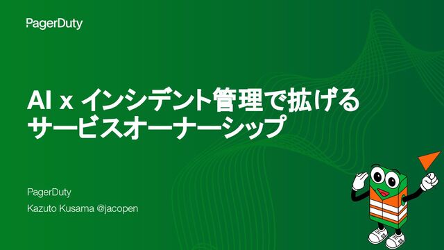 AI x インシデント管理で拡げる サービスオーナーシップ PagerDuty Kazuto Kusama @jacopen