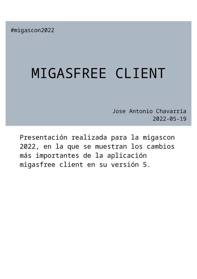 mostrado las novedades más importantes del cliente migasfree en su versión 5. El cambio más radical es la atomización de la API que consume el cliente. Es decir, que se han separado acciones, para hacer más sencilla y extensible la operativa entre cliente y servidor. Esto hace posible que se puedan desarrollar otros clientes a futuro, tal vez especializándose en algunas de las operaciones disponibles. Quedamos a la espera de vuestros comentarios. Gracias.