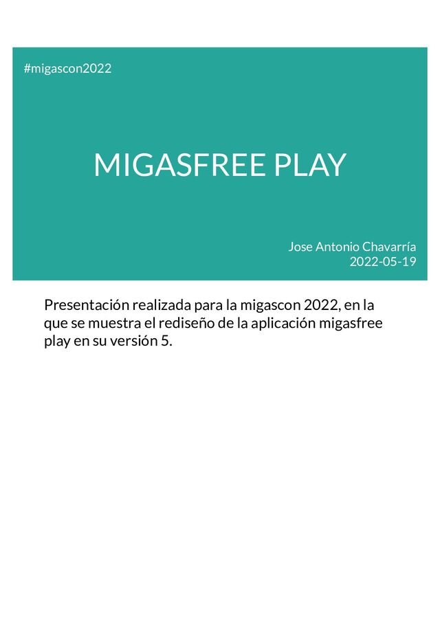 cambios en la arquitectura, hemos puesto al día el proyecto y seremos capaces de añadir nuevas características más rápidamente. Sobre todo, se ha mejorado la organización del código para hacerlo más extensible sin perder legibilidad. Si tenéis más interés, podéis consultar el proyecto en GitHub: https://github.com/jact/migasfree-play Cuando esté en producción esta nueva versión, el proyecto se pasará a github.com/migasfree. Gracias por vuestra atención.