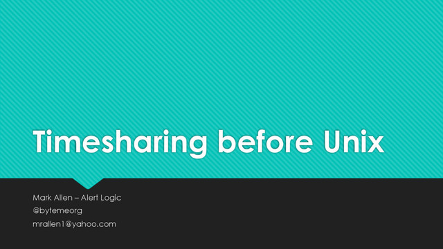 Most technologists are familiar with the outlines of the Unix origin story. This talk examines what happened before Unix. Where did the concept of time-sharing come from? What were early implementations of the ideas? How did they influence Unix?