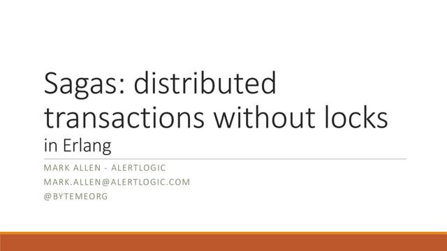 This talk discusses the sagas pattern and an Erlang implementation of the pattern from Erlang User Conference 2017