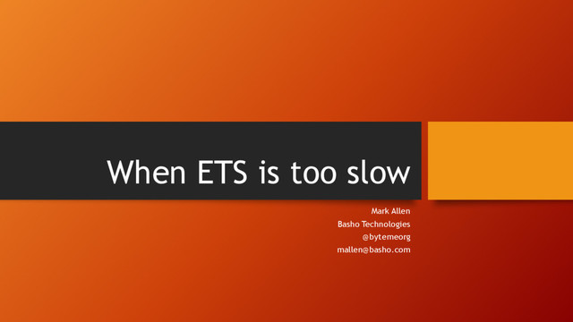 What should you do when ETS is too slow? This talk examines some different approaches to reducing read/get latencies from ETS. Presented at Erlang Factory 2016.