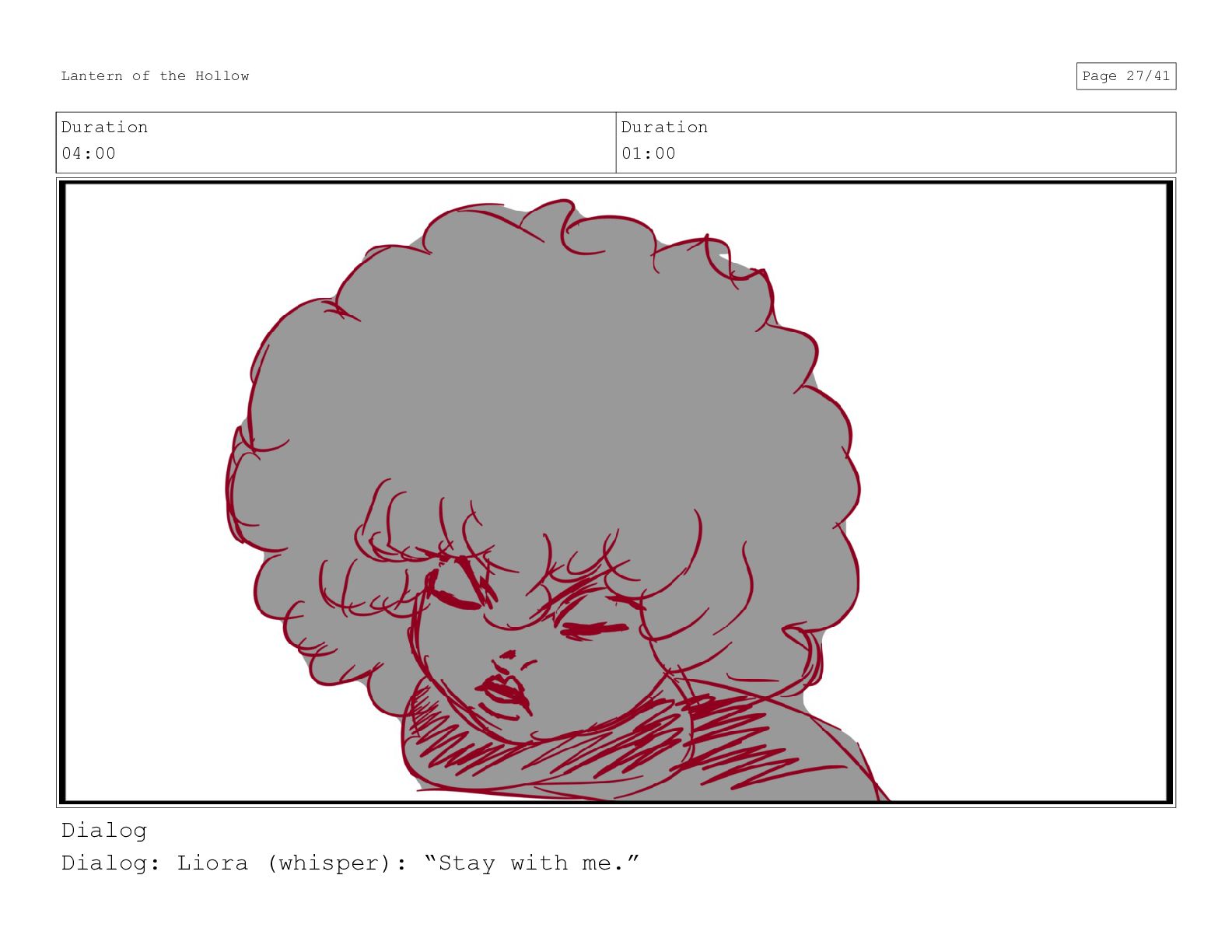 Duration 04:00 Duration 01:00 Dialog Dialog: Liora (whisper): “Stay with