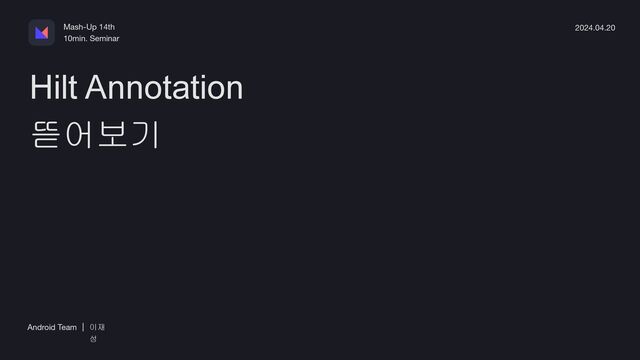 Annotation Application#onCreate 시점에 의존성을 주입한다. 뷰모델에 대한 의존성을 주입하기 위해 사용하는 Hilt Annotation @AndroidEntryPoint로 선언된 Activity/Fragment에서 사용이 뷰모델 인스턴스 사용이 가능해짐 HiltViewModelFactory를 통해 @HiltViewModel 이 붙은 뷰모델을 반환한다. Android Team