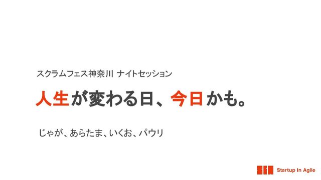 人生が変わる日、 今日かも。 スクラムフェス神奈川 ナイトセッション じゃが、あらたま、いくお、パウリ