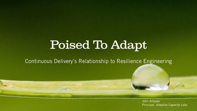 and a community 2. A cognitive systems perspective of the CD/CI community 3. Poise/potential/capacity to adapt 4. Some (hopefully) thought-provoking questions