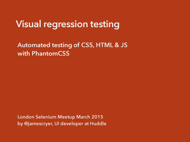 process The risk of regression is higher with responsive layouts and complex applications CSS refactoring is necessary for long life projects Visual regression identification can often be difficult and subjective