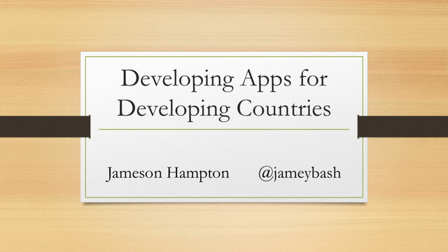 A constraint that’s a little more unique to programming in the third world • Planned to use a NoSQL solution to rely on eventual consistency MDBW 17 | @jameybash • An inexperienced user base! • Good UI/UX is always important of course, but it’s different when your target audience hasn’t really used apps before • Can’t assume the same things will be intuitive to them, since they don’t have the same shared background