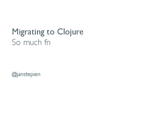 Migrating to Clojure So much fn @janstepien
