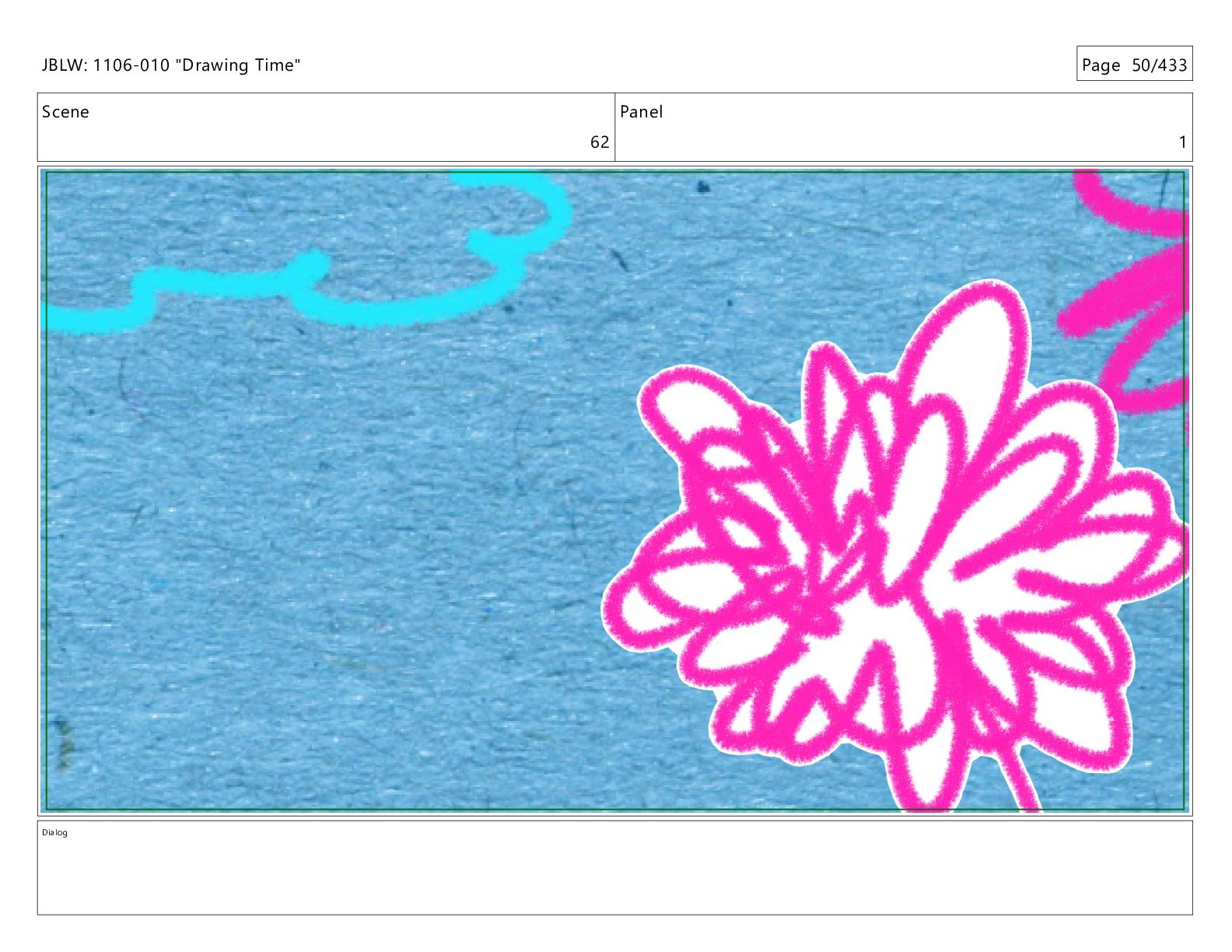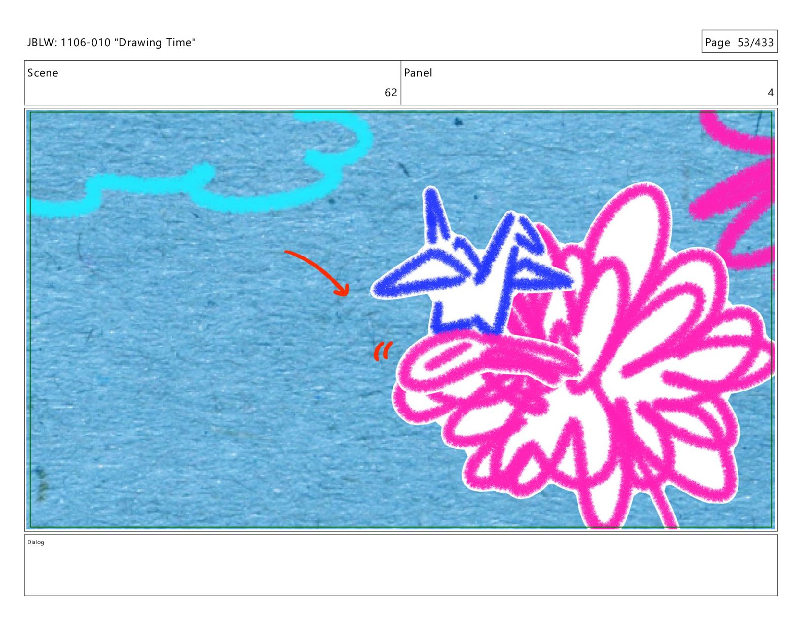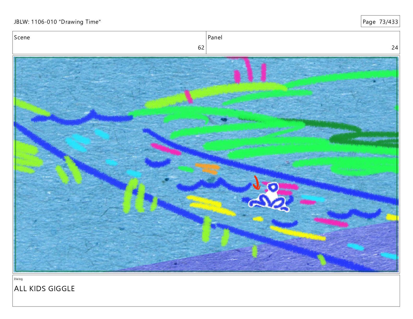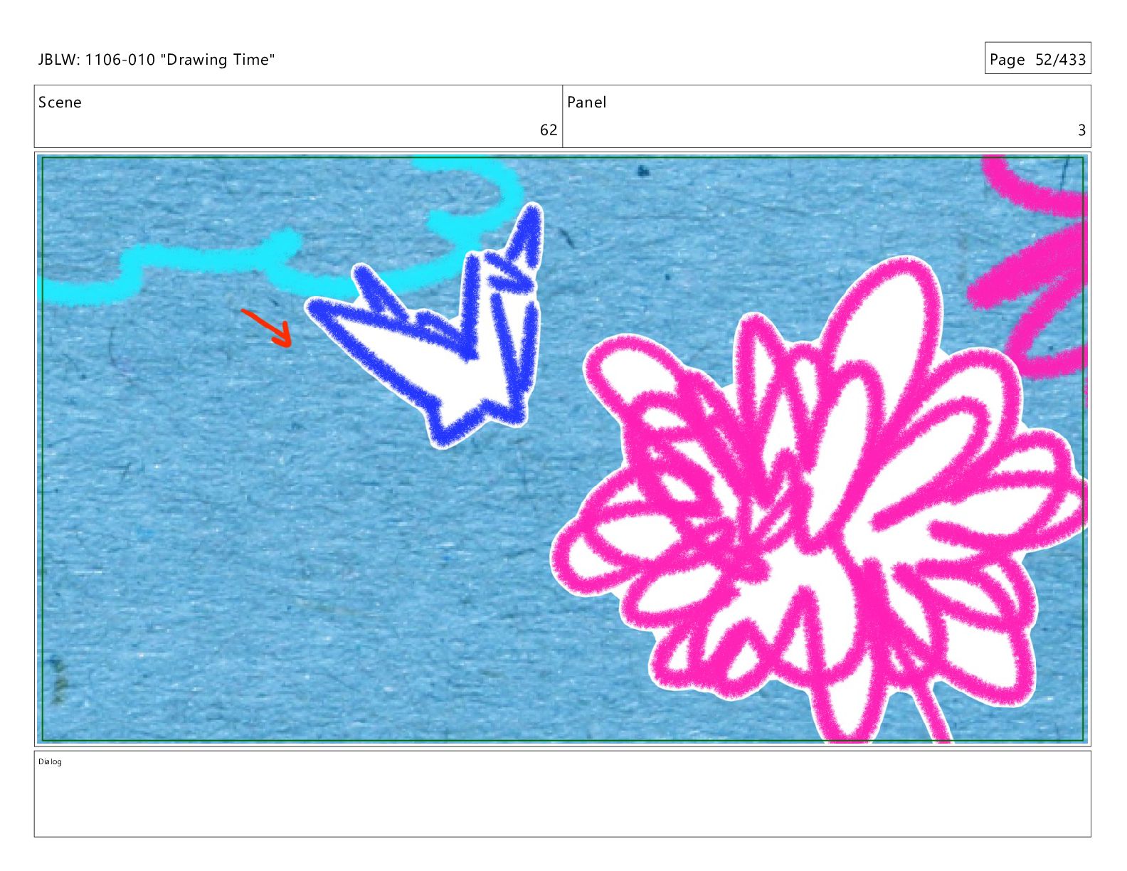 Scene 62 Panel 1 Dialog JBLW: 1106-010 "Drawing Time" Page