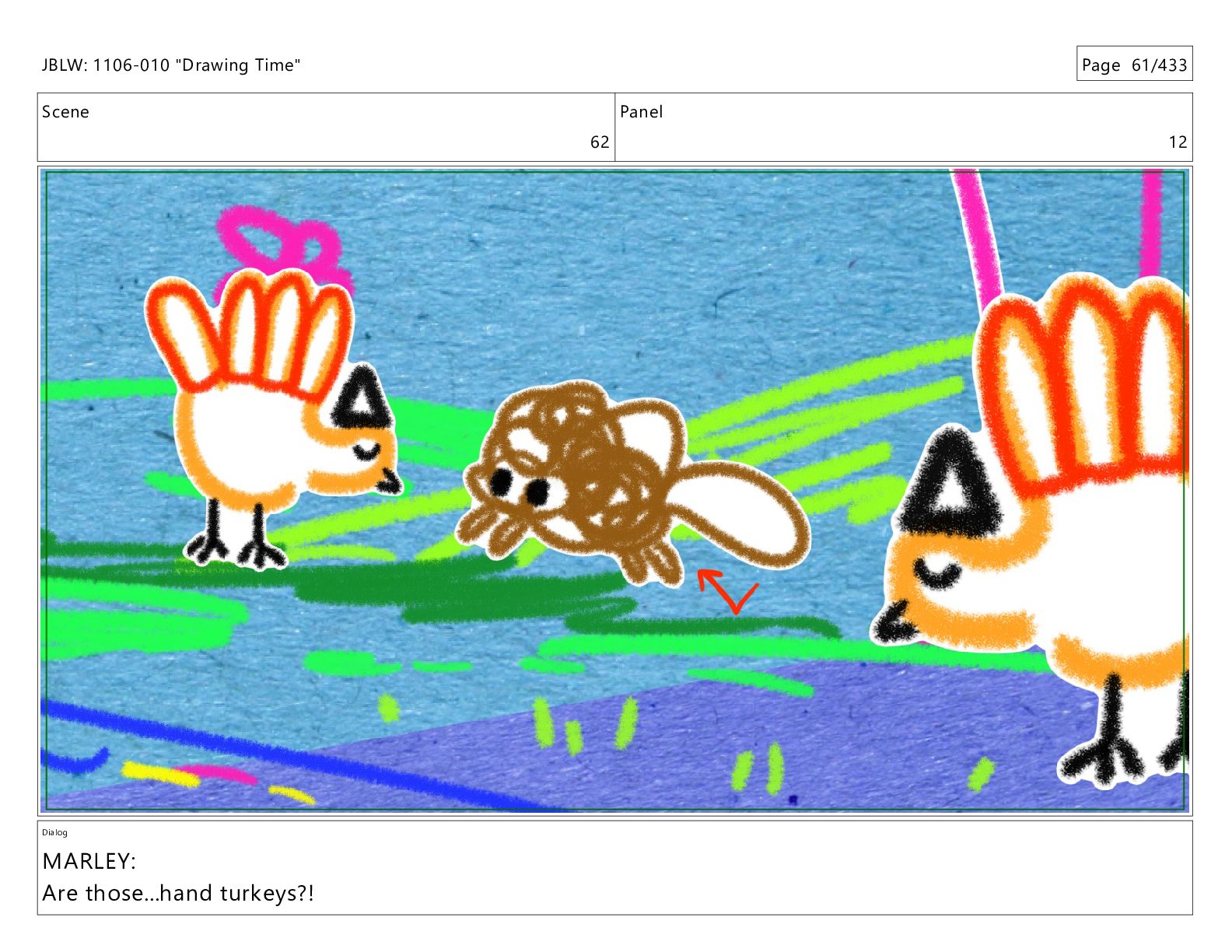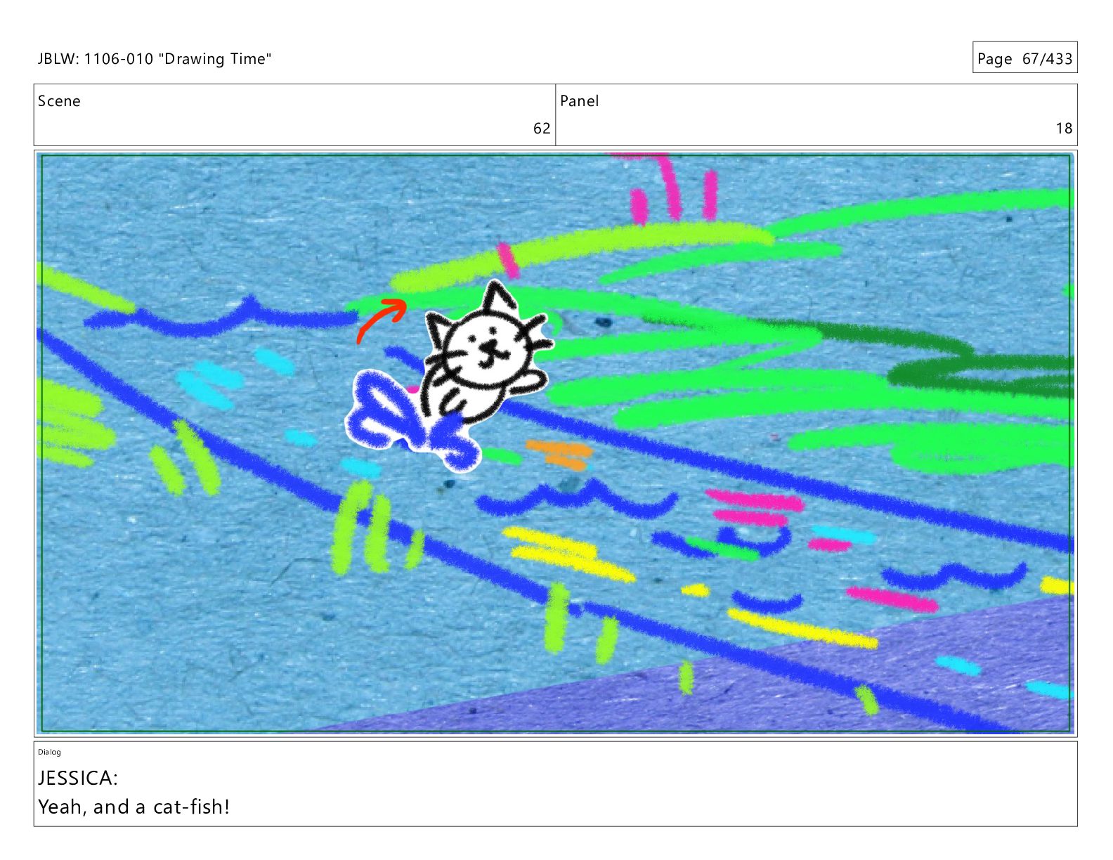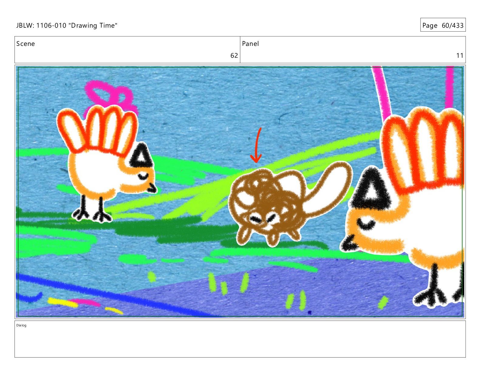 Scene 62 Panel 1 Dialog JBLW: 1106-010 "Drawing Time" Page