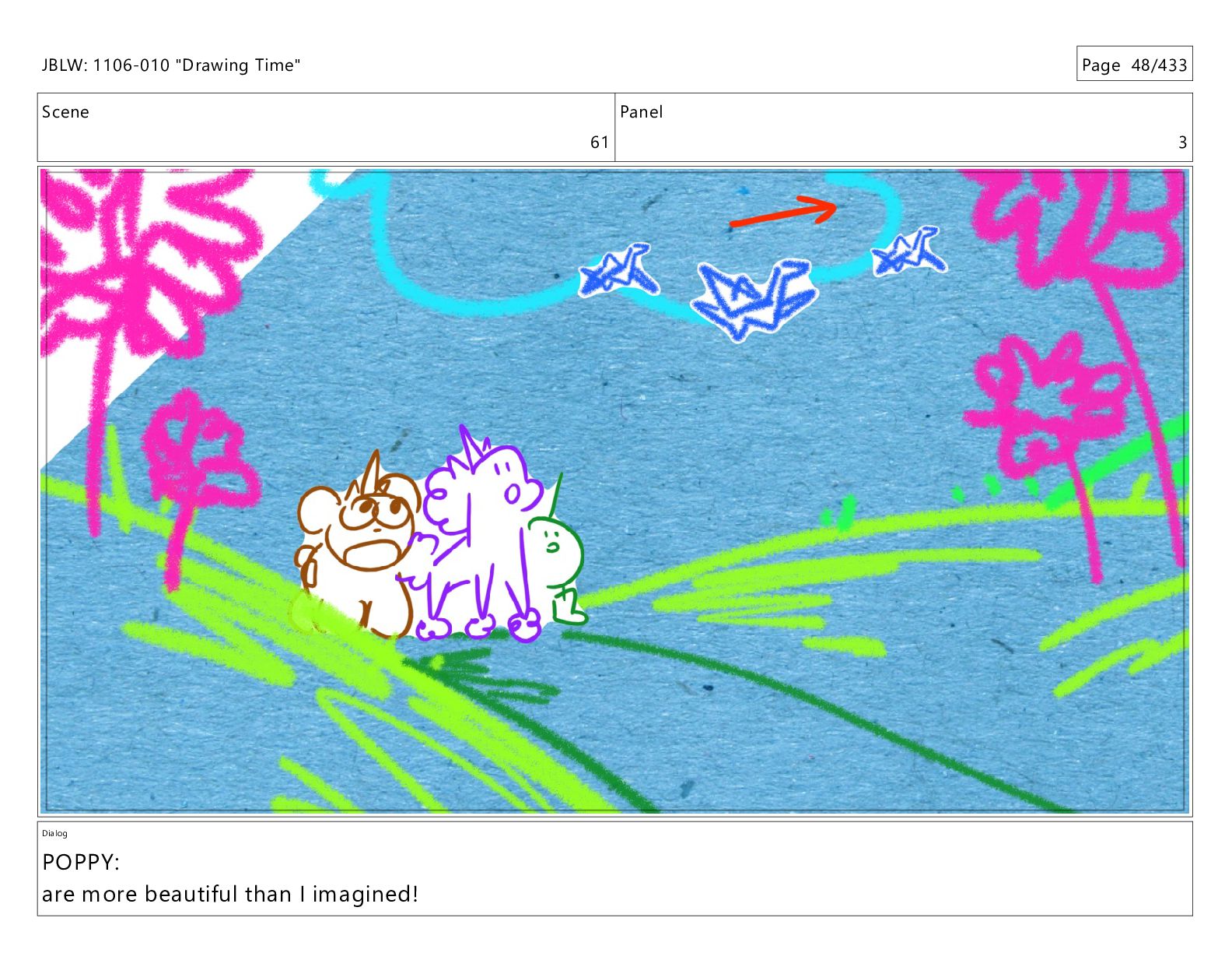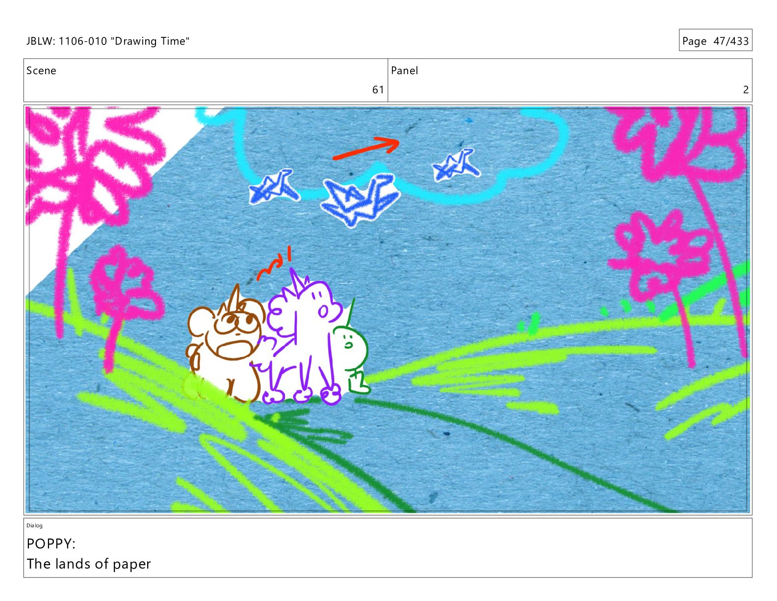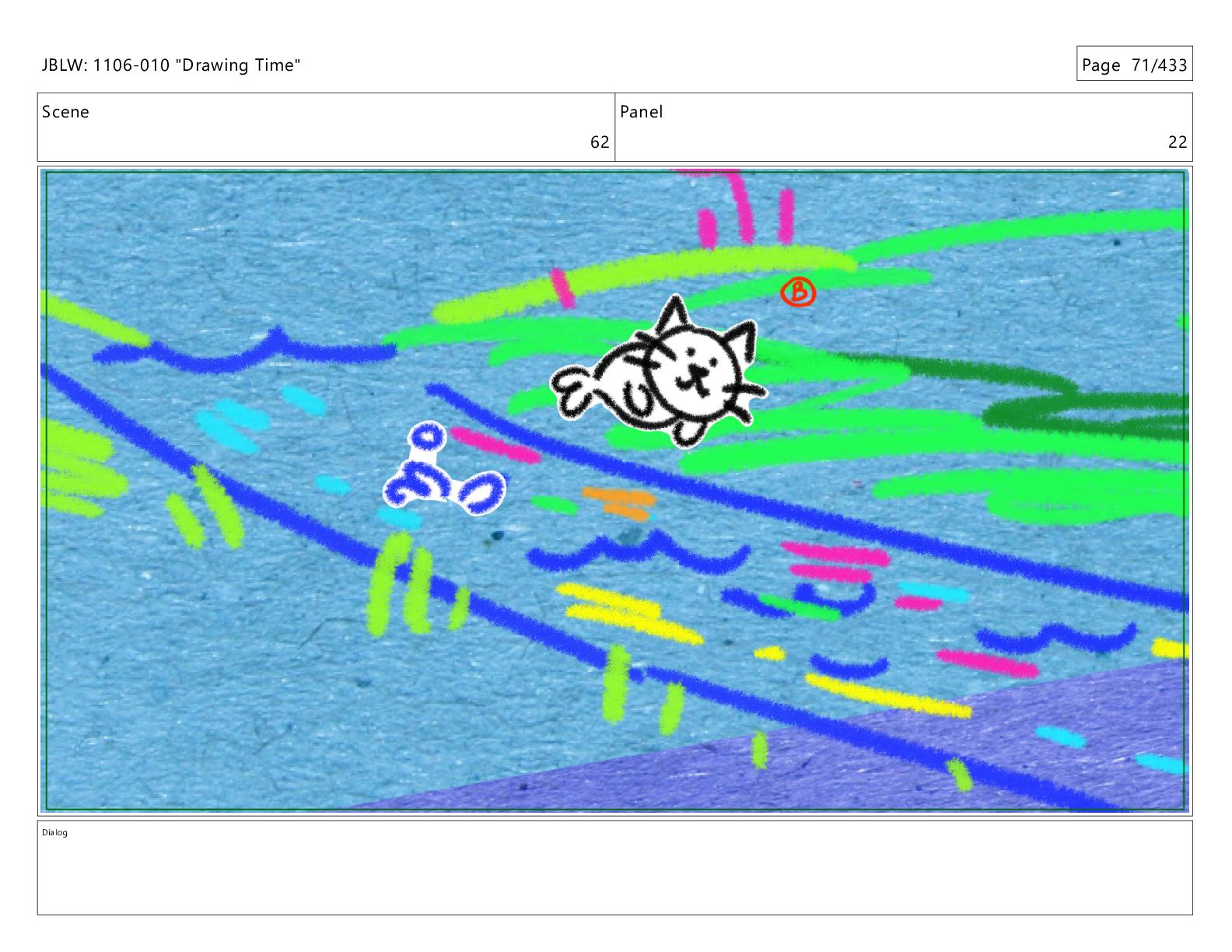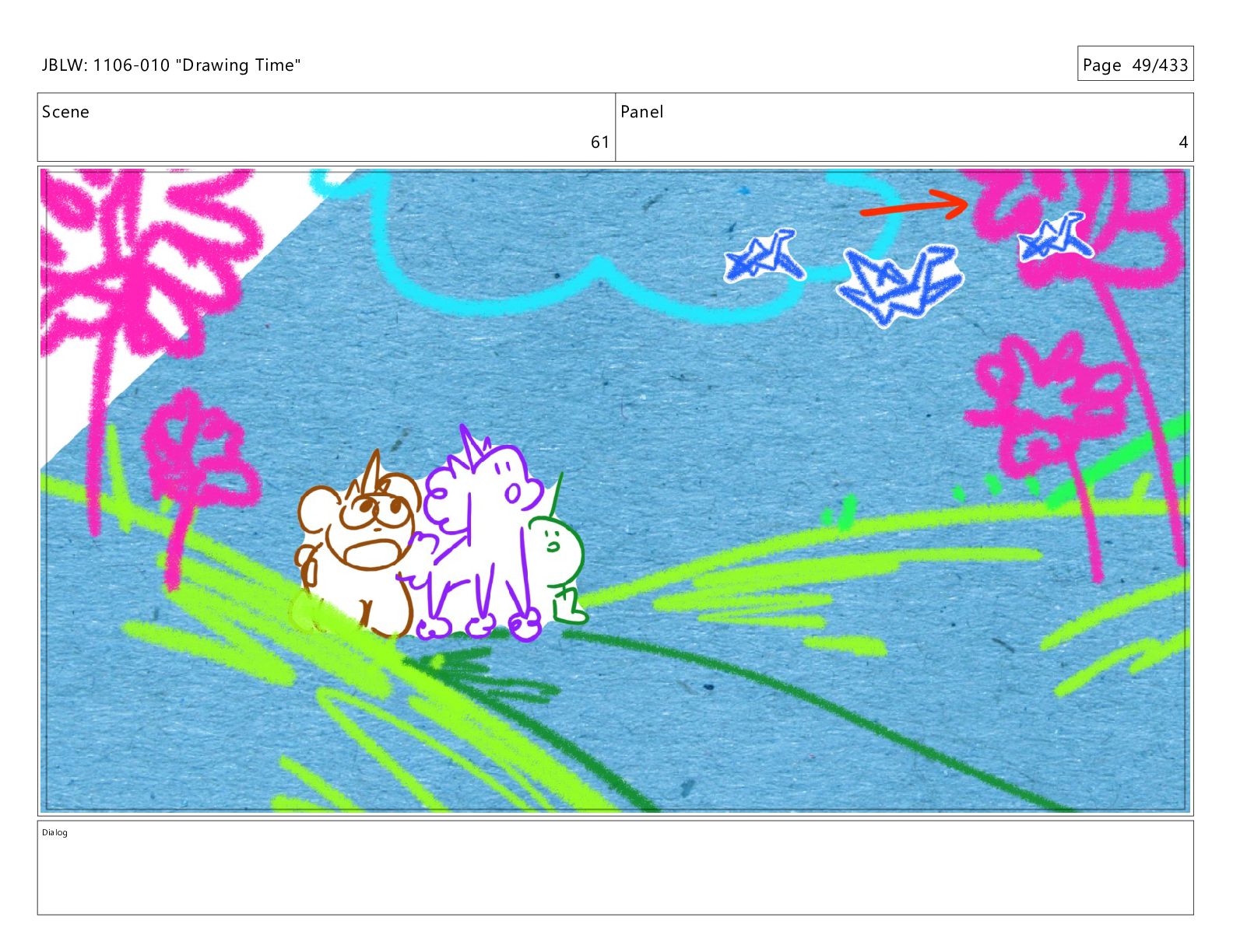 Scene 62 Panel 1 Dialog JBLW: 1106-010 "Drawing Time" Page