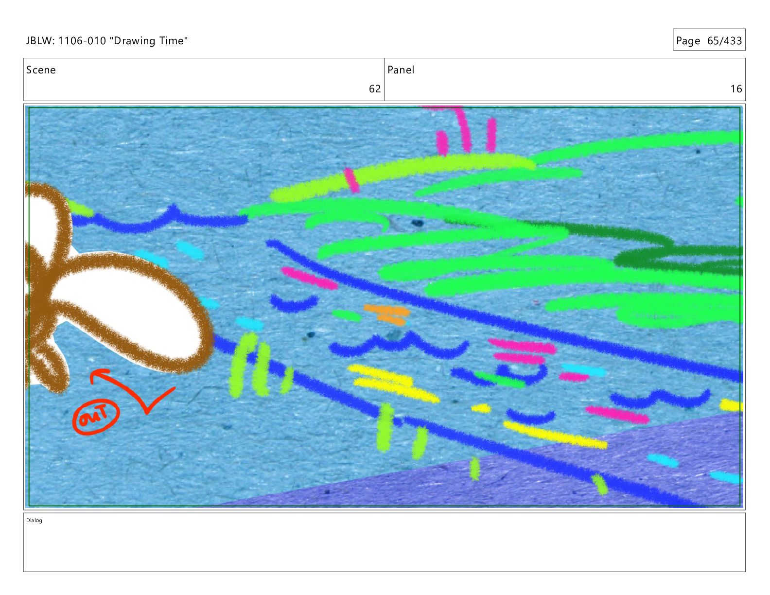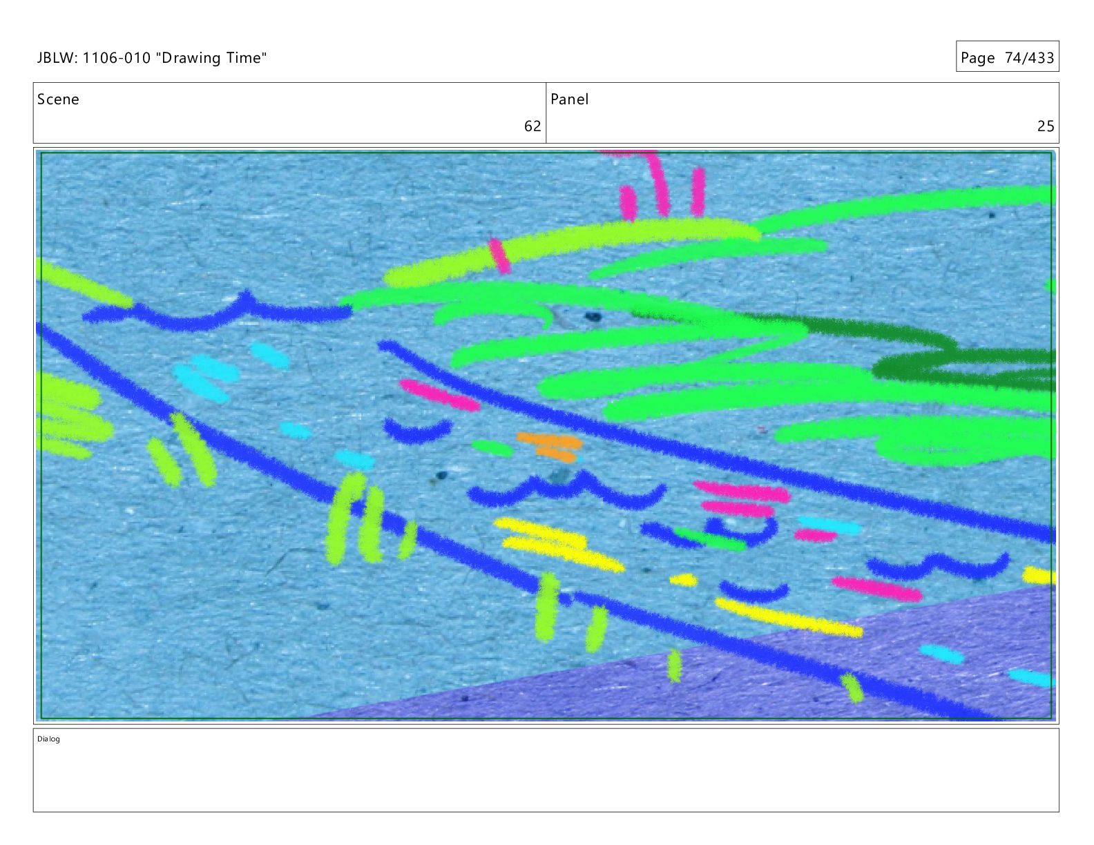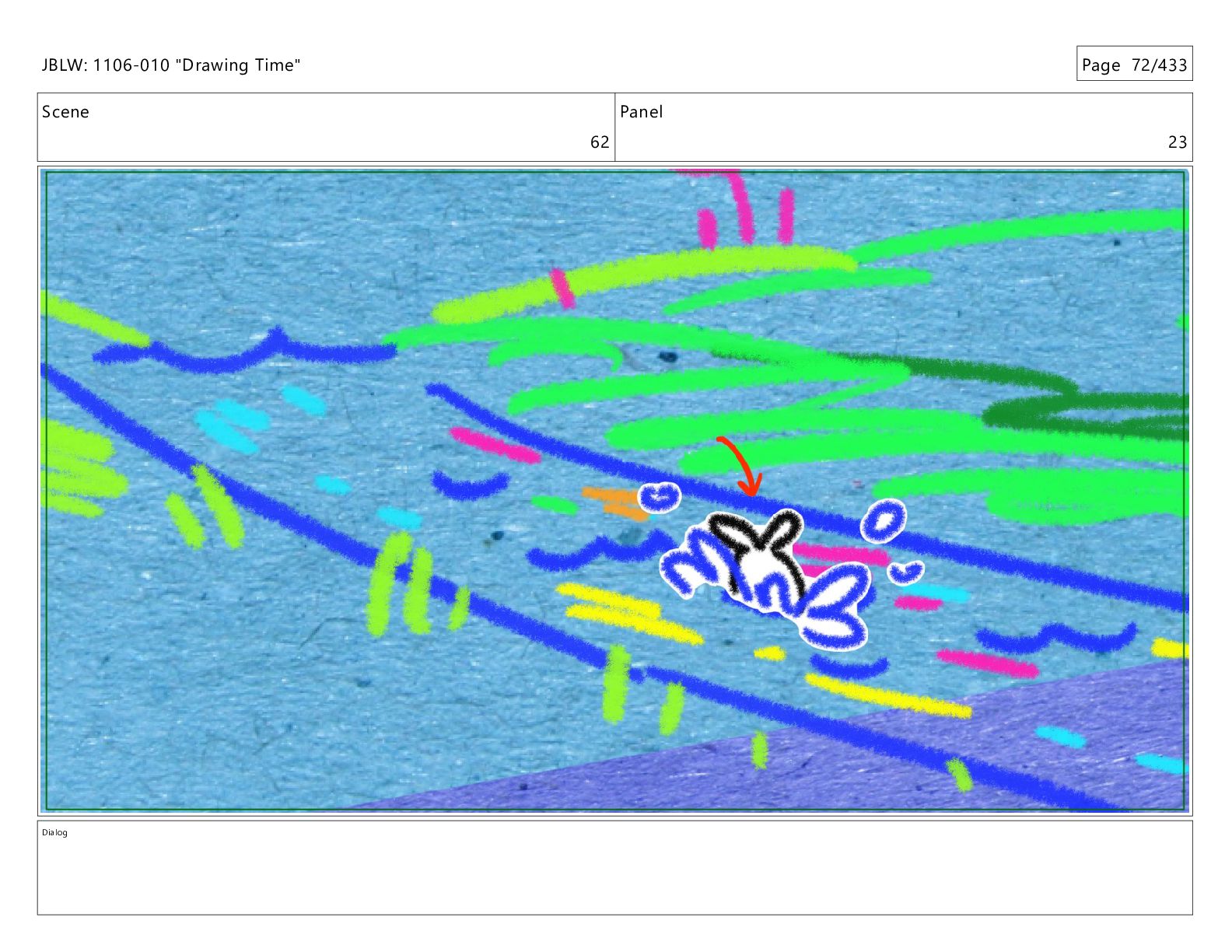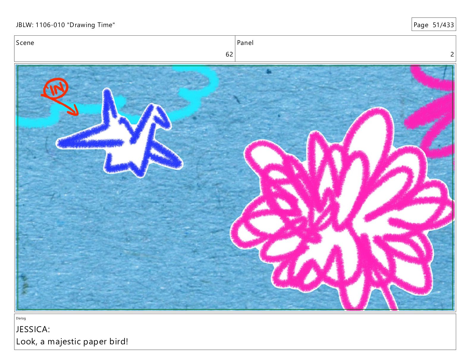Scene 62 Panel 23 Dialog JBLW: 1106-010 "Drawing Time" Page