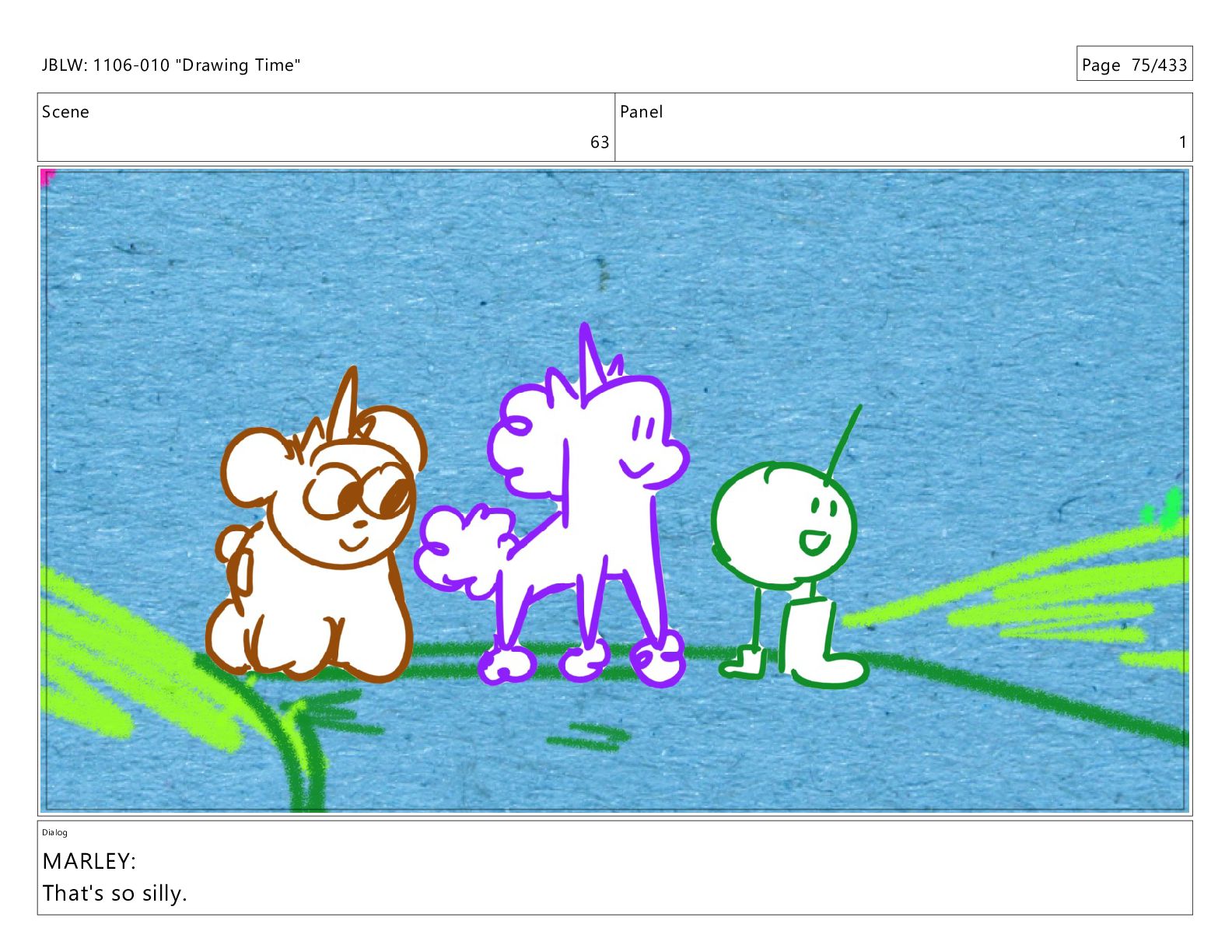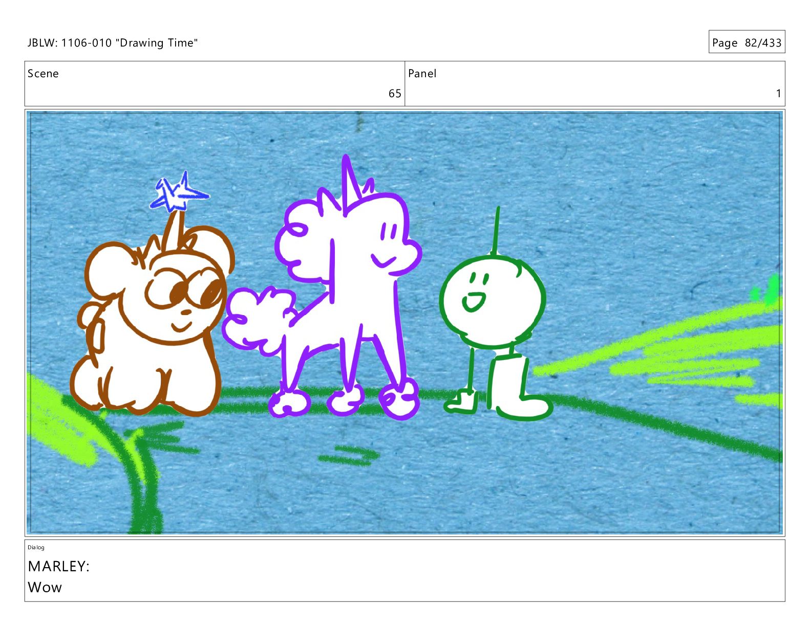 Scene 65 Panel 1 Dialog MARLEY: Wow JBLW: 1106-010 "Drawing