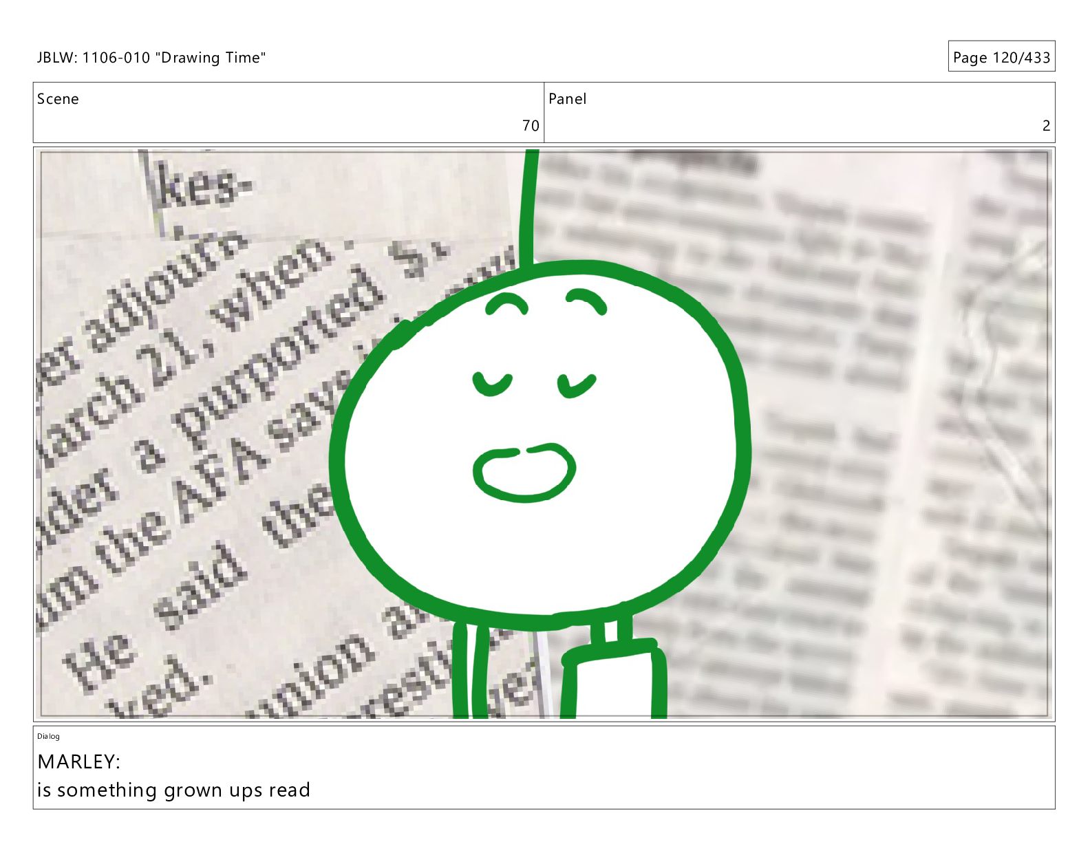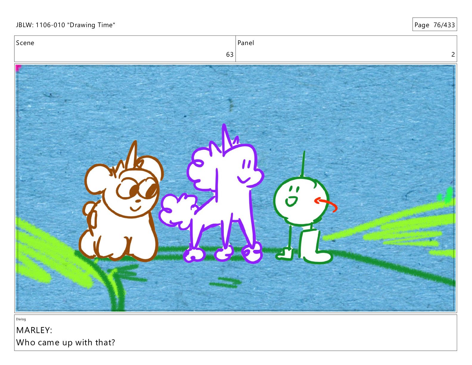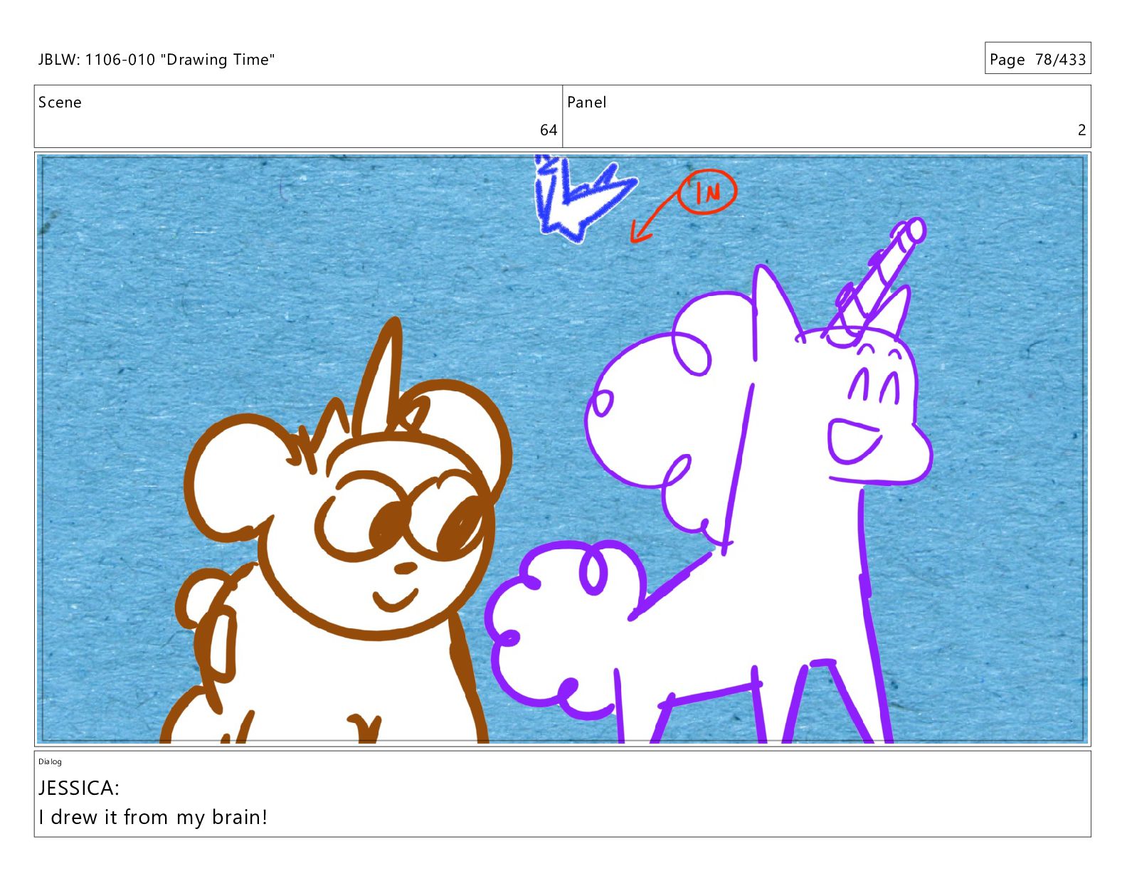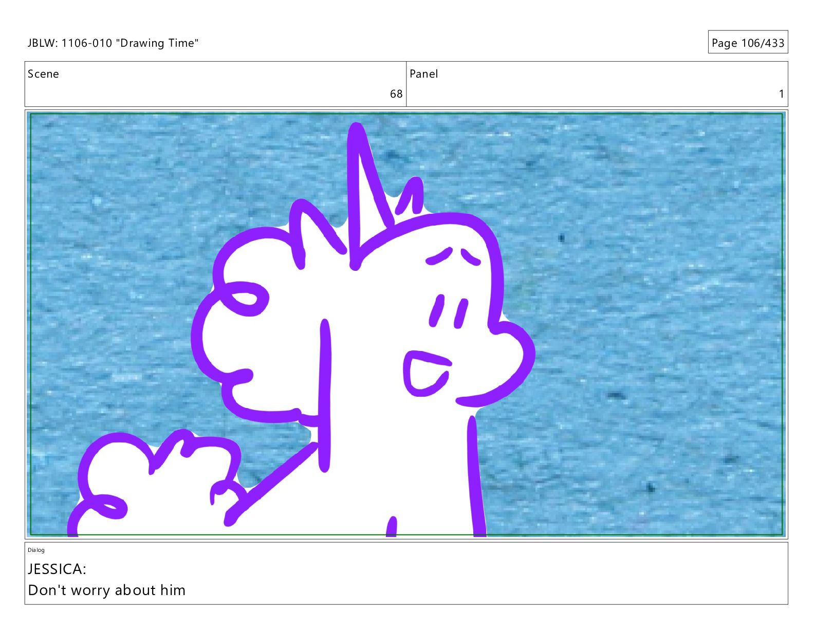 Scene 66 Panel 2 Dialog JBLW: 1106-010 "Drawing Time" Page