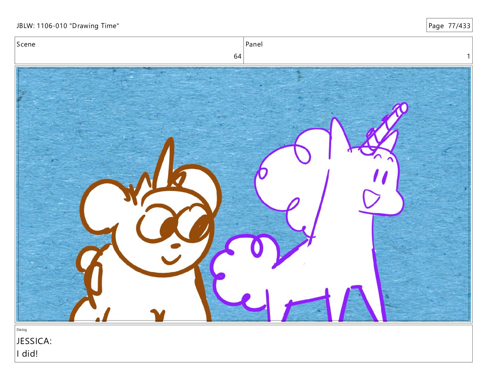 Scene 64 Panel 5 Dialog JBLW: 1106-010 "Drawing Time" Page
