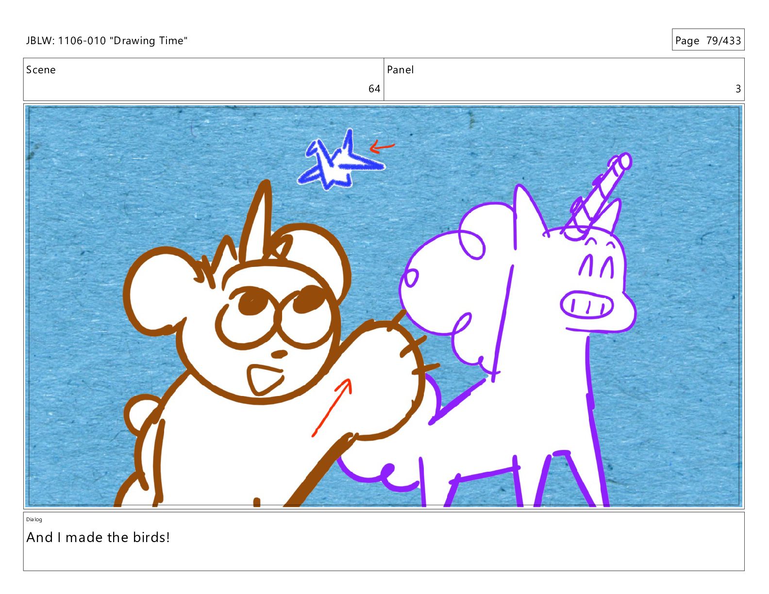 Scene 64 Panel 3 Dialog And I made the birds!