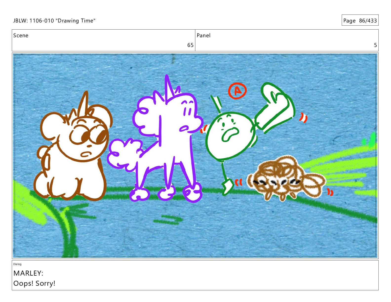 Scene 65 Panel 4 Dialog JBLW: 1106-010 "Drawing Time" Page