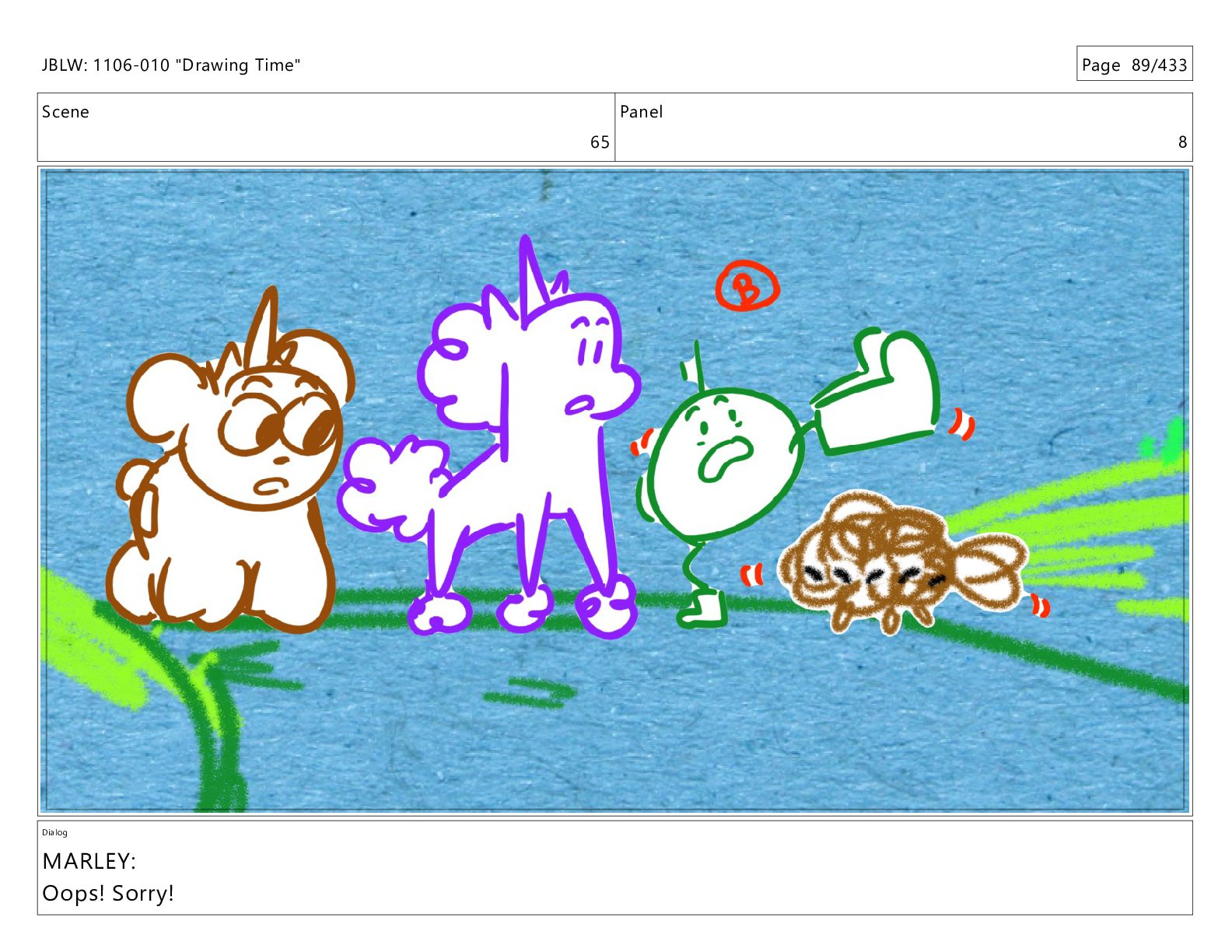 Scene 65 Panel 7 Dialog MARLEY: Oops! Sorry! JBLW: 1106-010