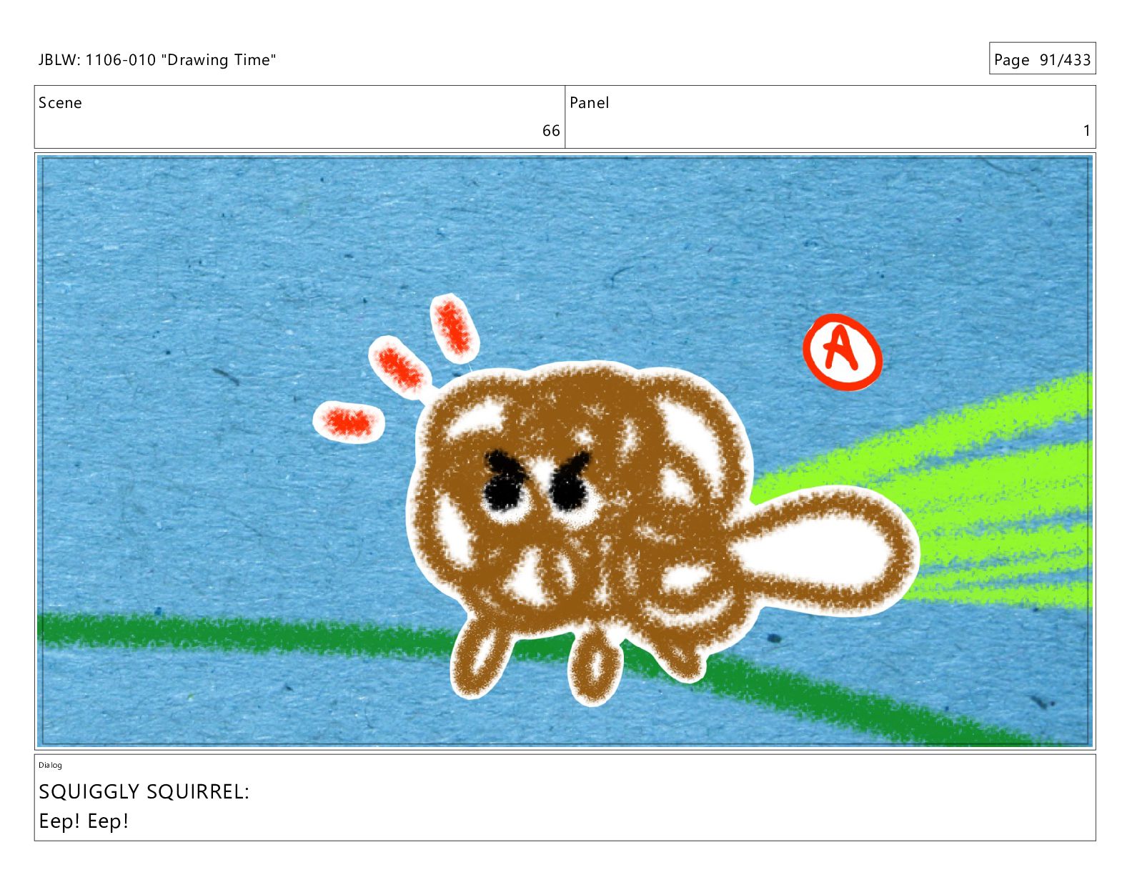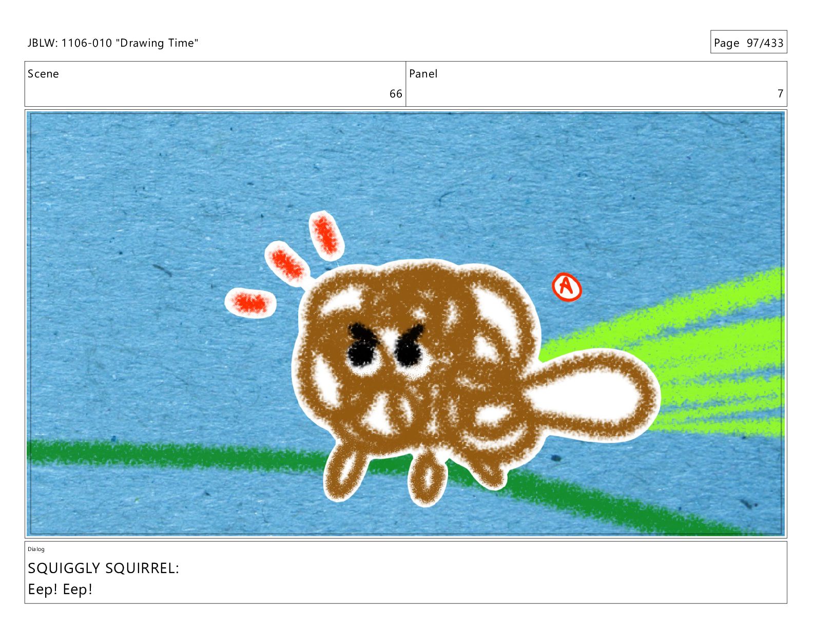 Scene 66 Panel 7 Dialog SQUIGGLY SQUIRREL: Eep! Eep! JBLW: