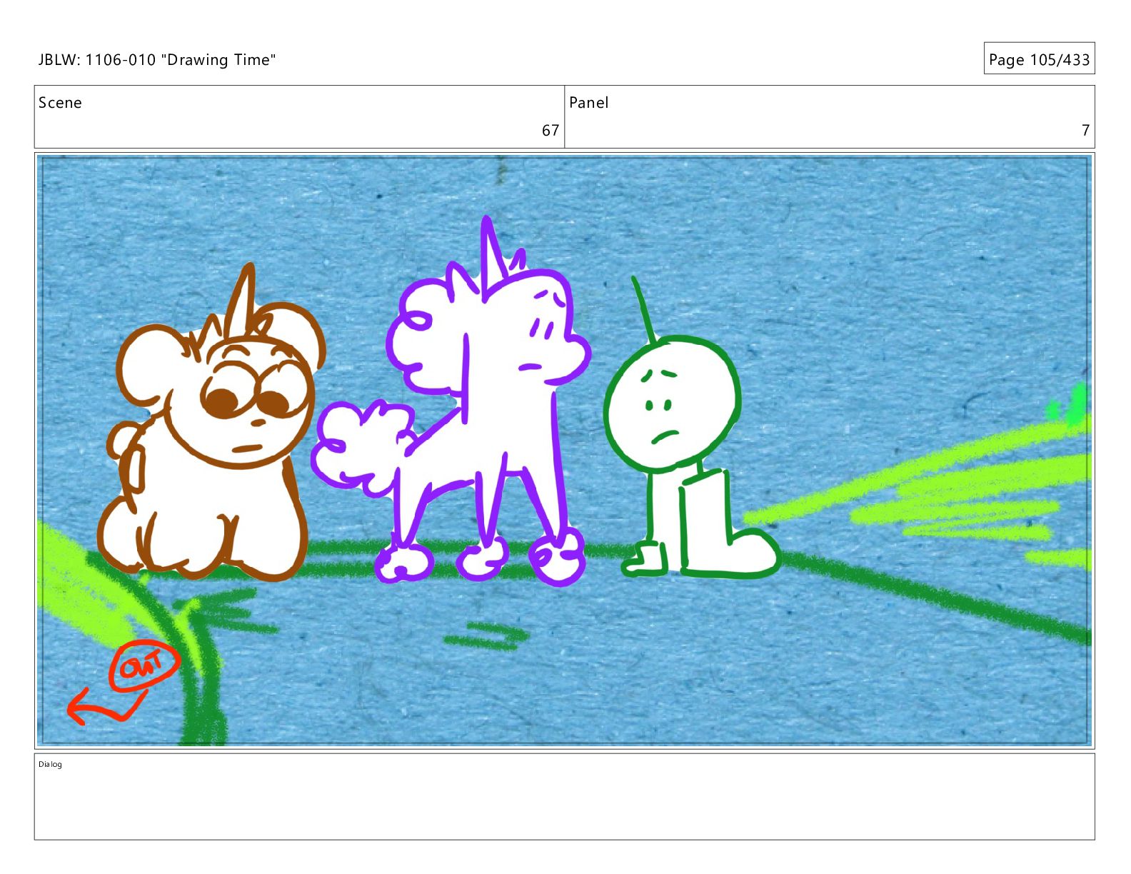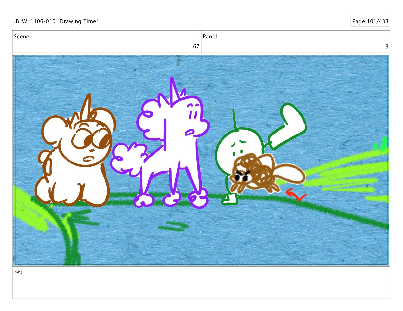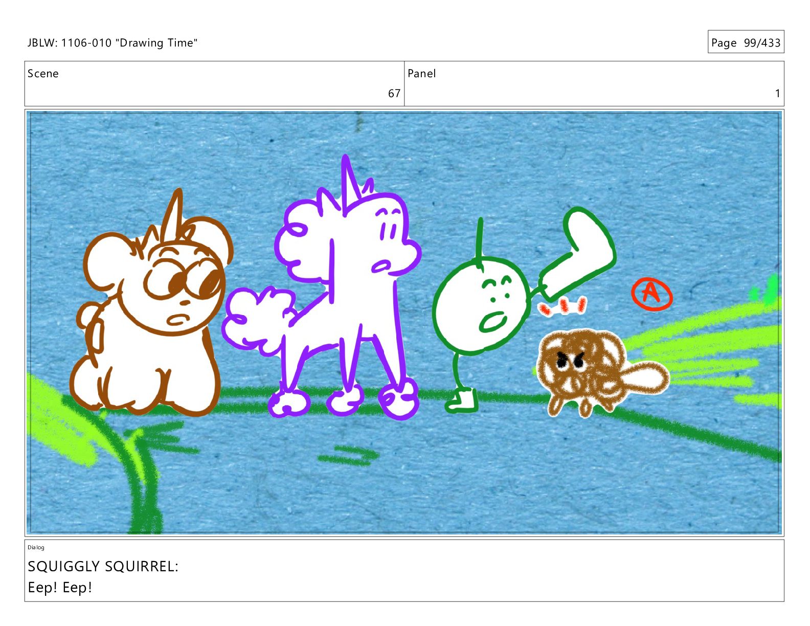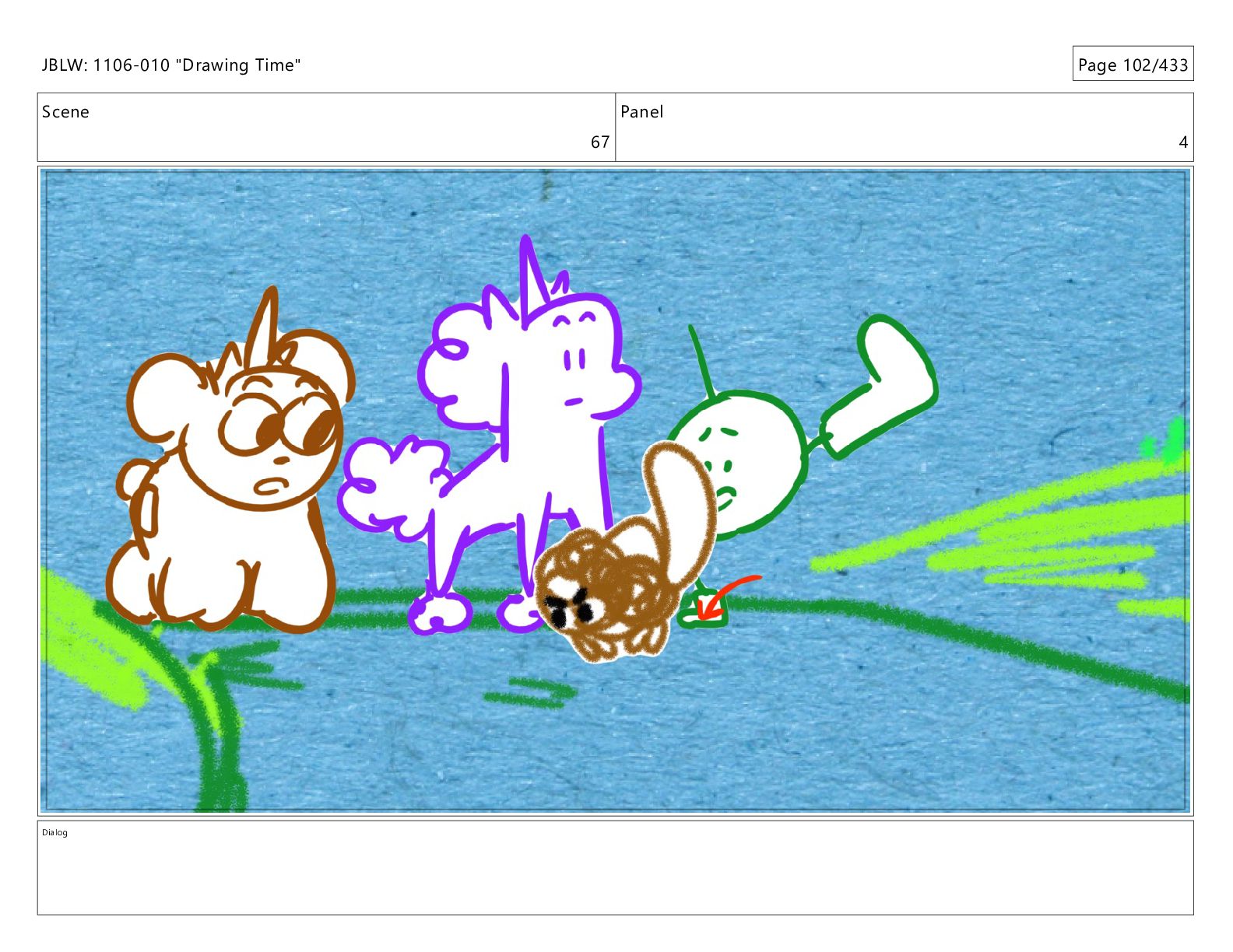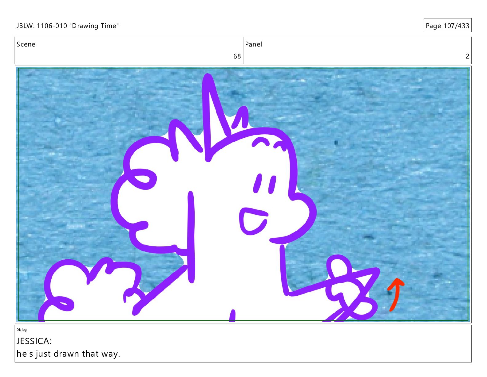 Scene 67 Panel 2 Dialog JBLW: 1106-010 "Drawing Time" Page
