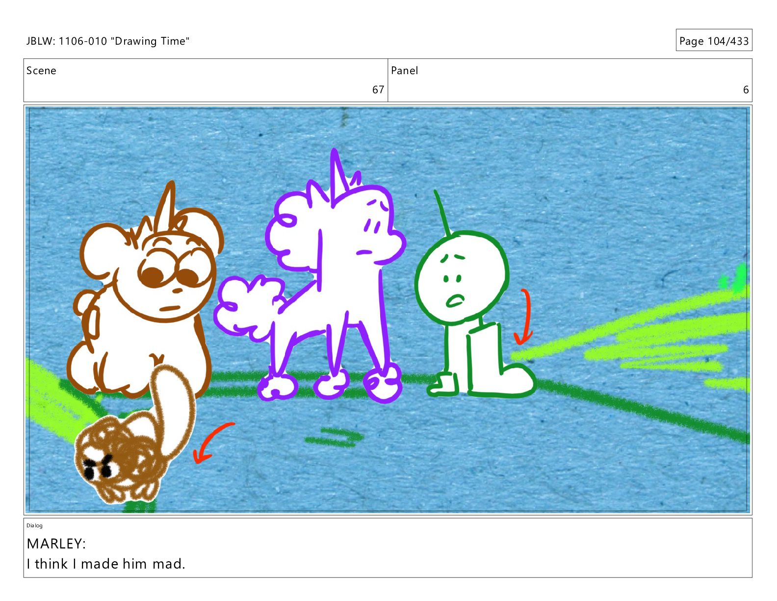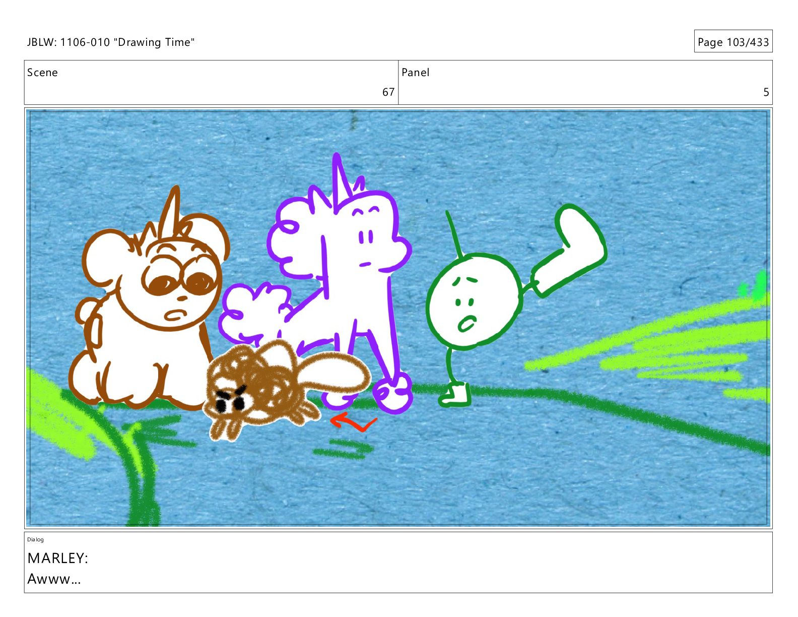 Scene 67 Panel 5 Dialog MARLEY: Awww... JBLW: 1106-010 "Drawing