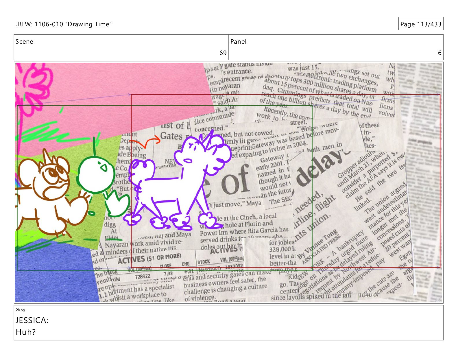 Scene 69 Panel 6 Dialog JESSICA: Huh? JBLW: 1106-010 "Drawing