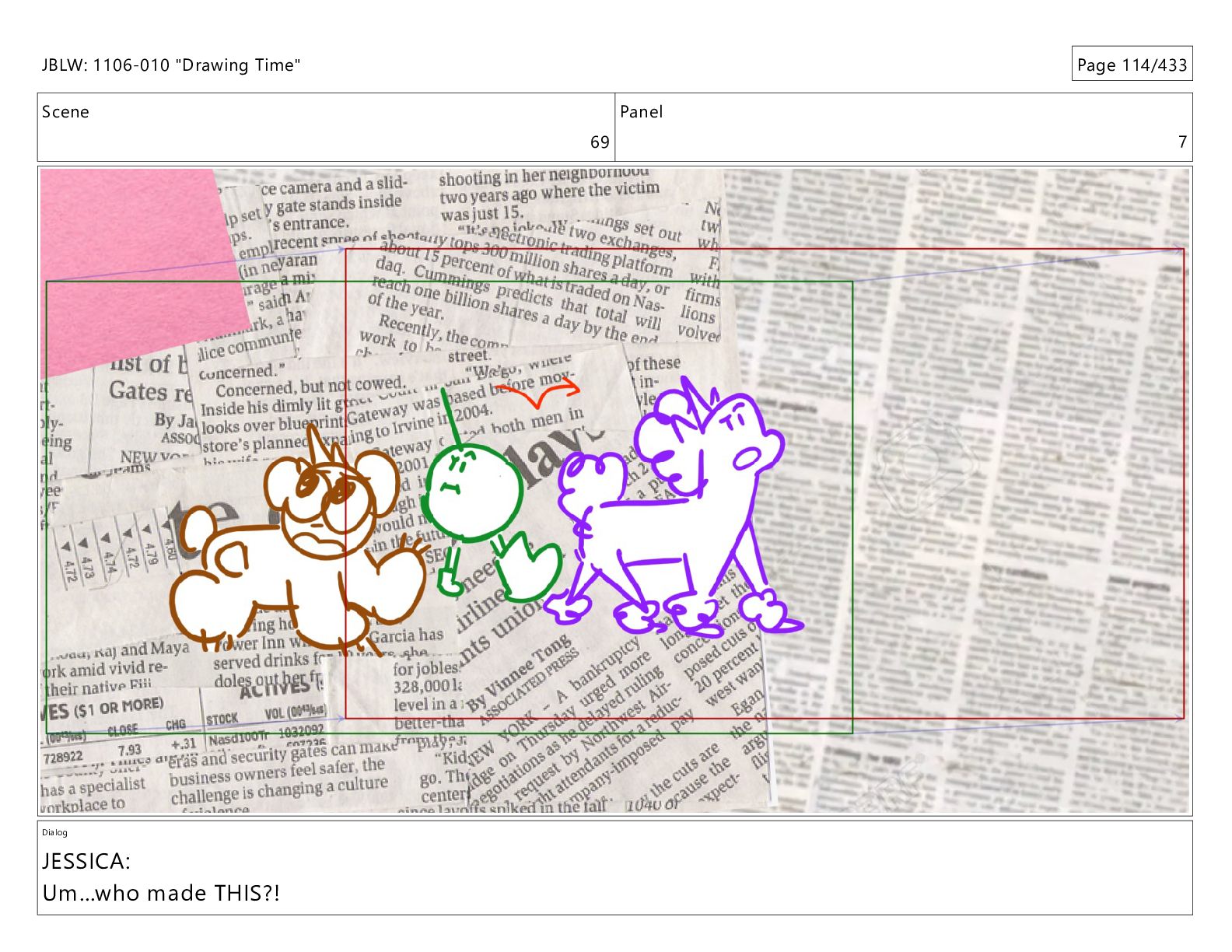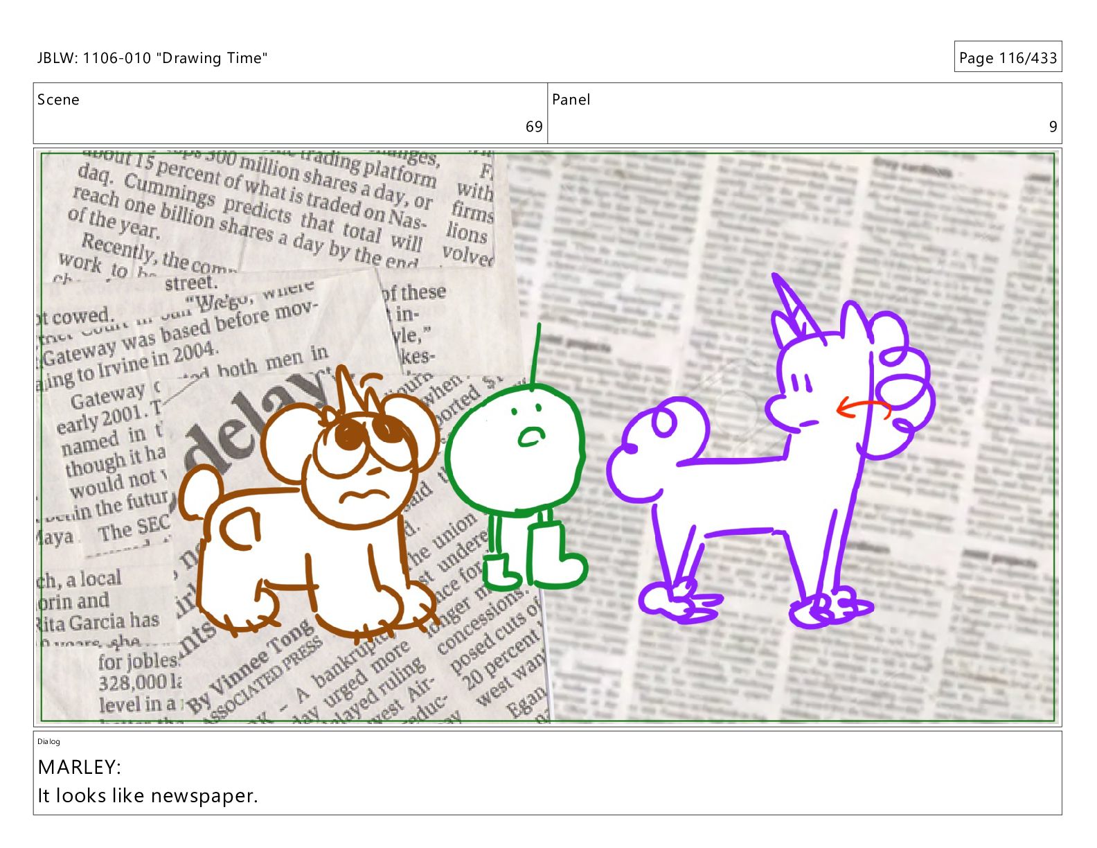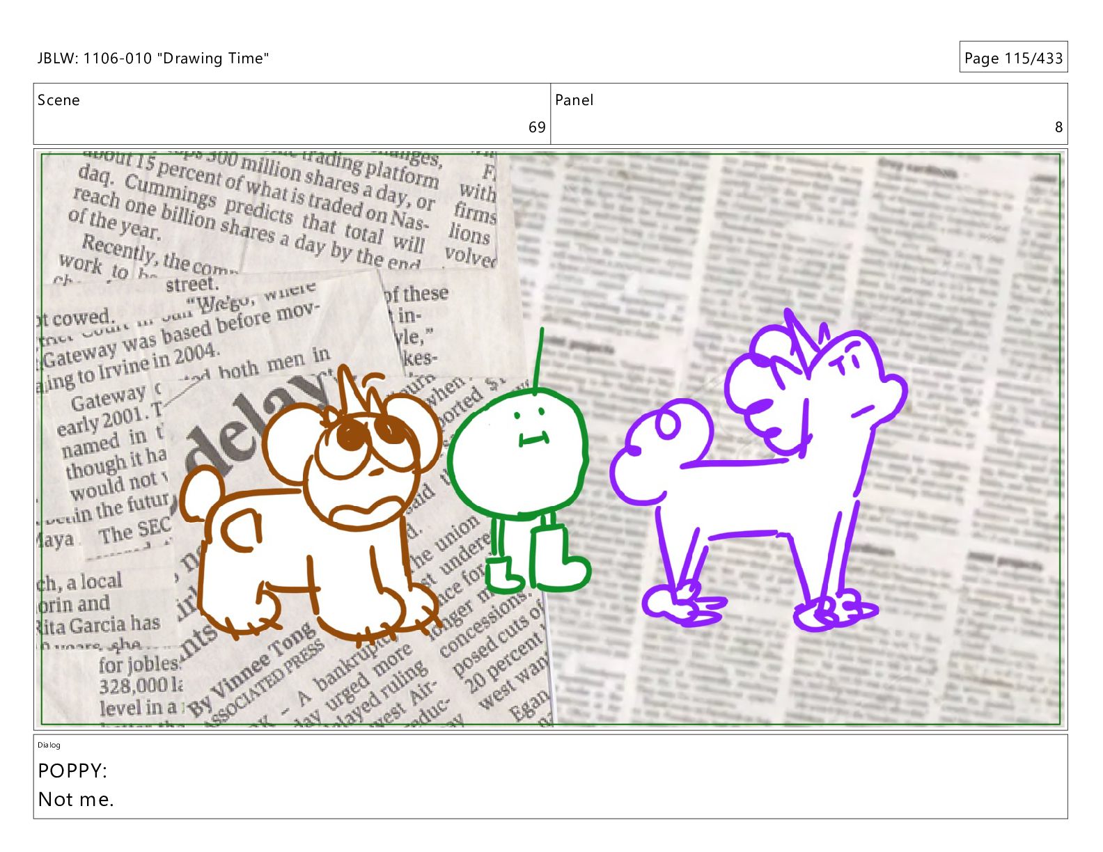 Scene 69 Panel 2 Dialog JBLW: 1106-010 "Drawing Time" Page