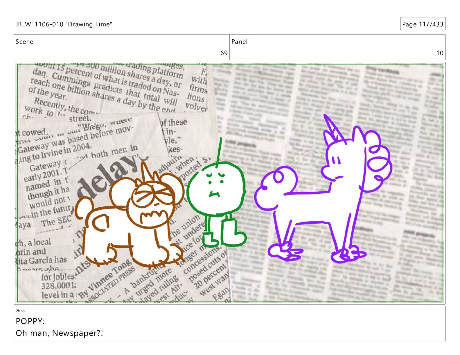 Scene 69 Panel 10 Dialog POPPY: Oh man, Newspaper?! JBLW: