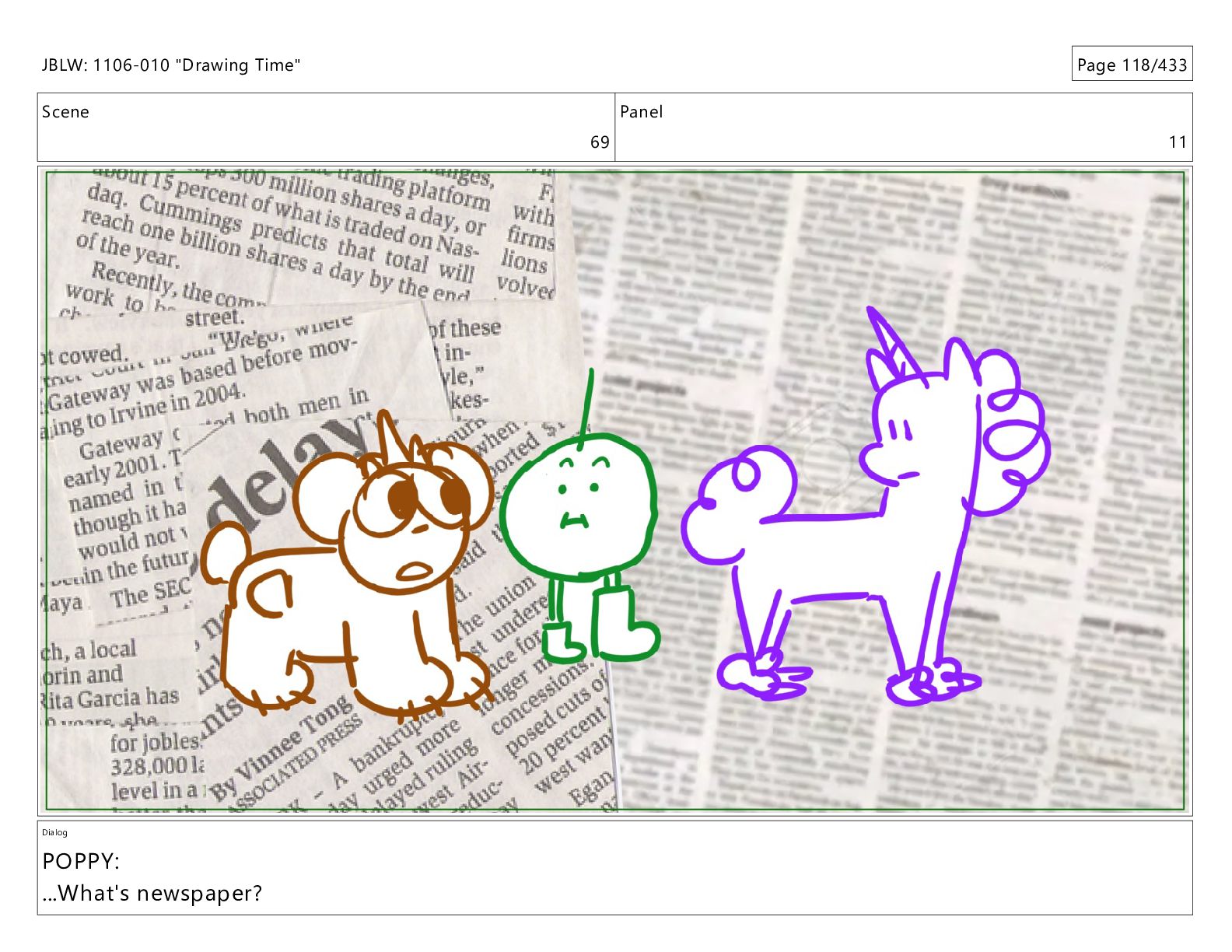 Scene 69 Panel 11 Dialog POPPY: ...What's newspaper? JBLW: 1106-010