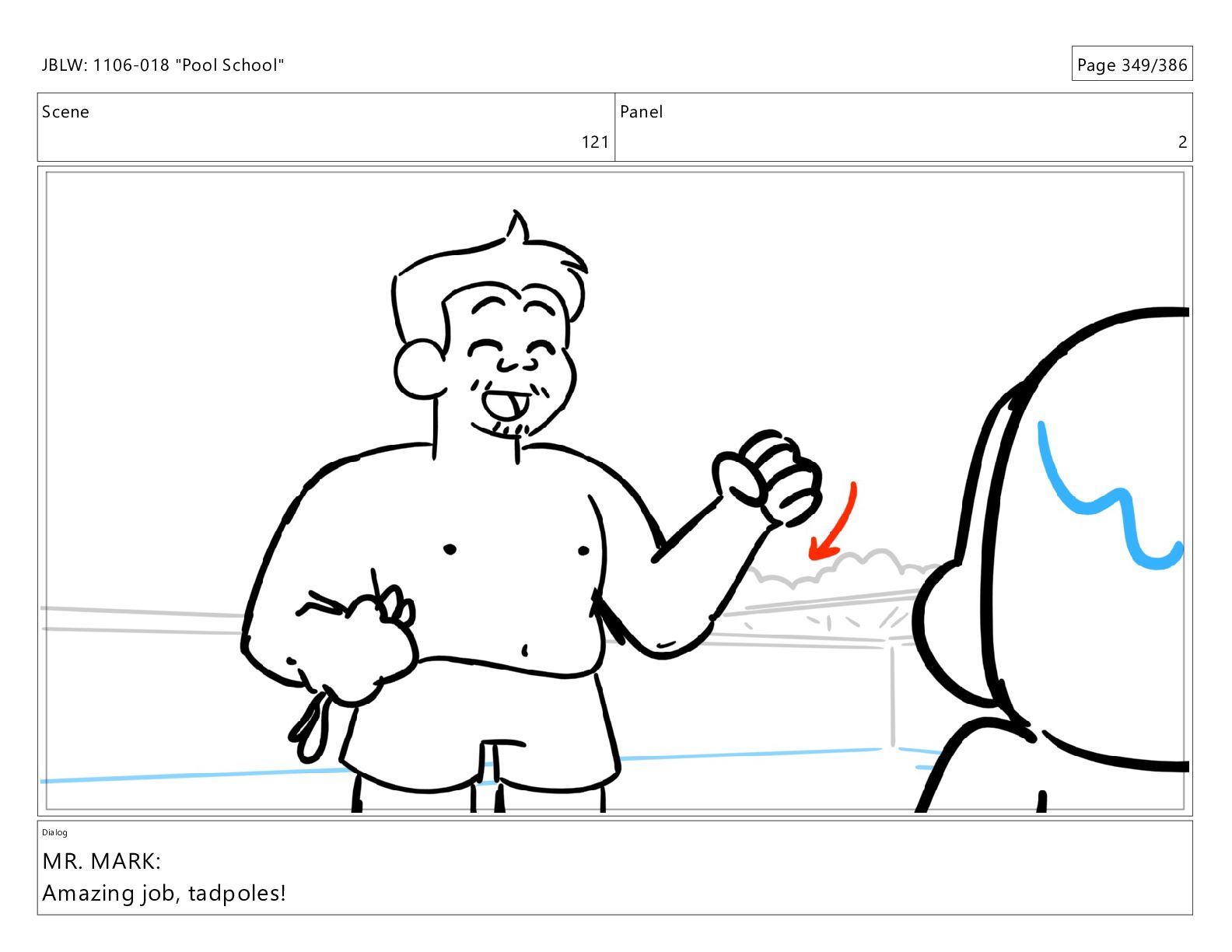 Scene 121 Panel 2 Dialog MR. MARK: Amazing job, tadpoles!