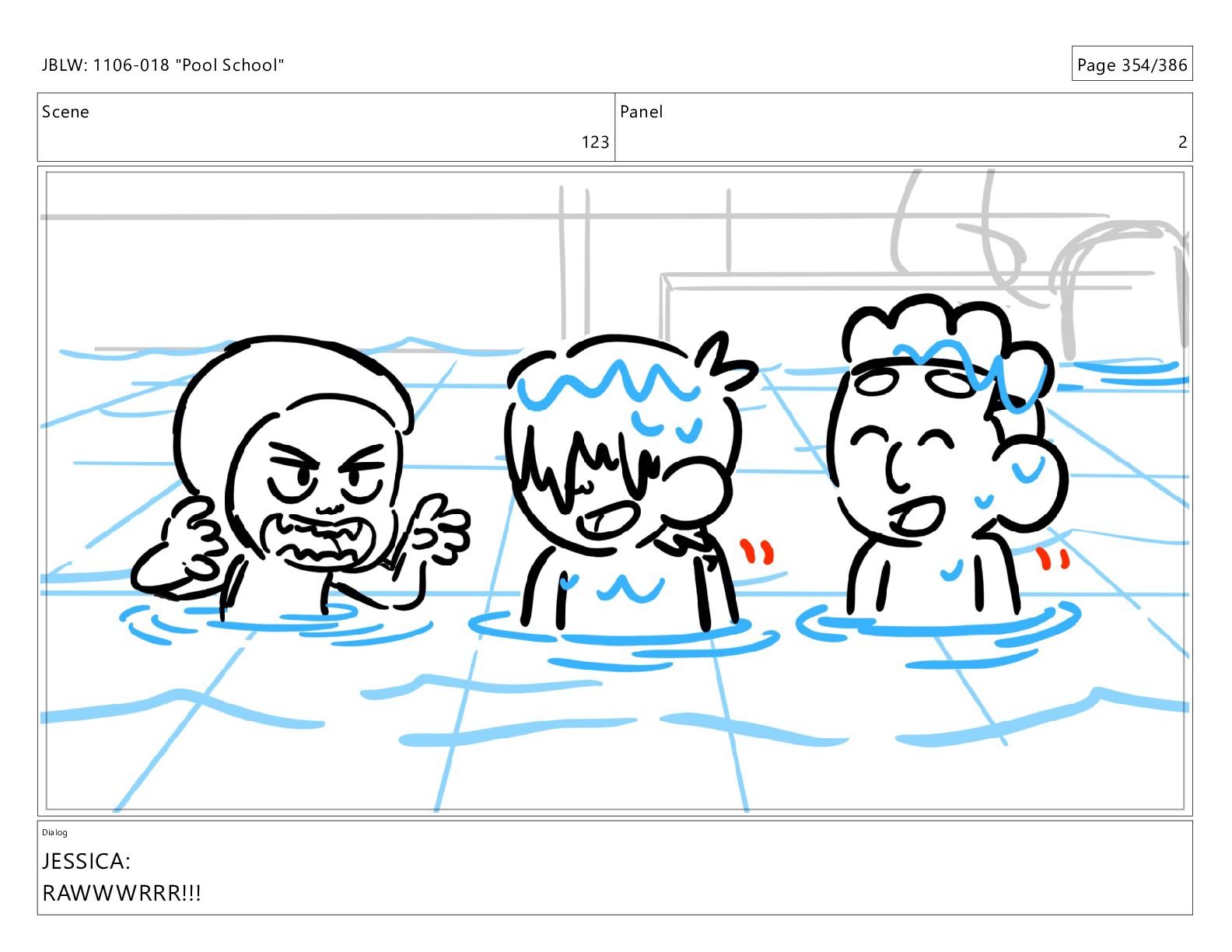 Scene 123 Panel 2 Dialog JESSICA: RAWWWRRR!!! JBLW: 1106-018 "Pool