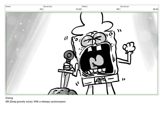 Scene 001 Duration 21:00 Panel 007 Duration 00:08 Dialog SB