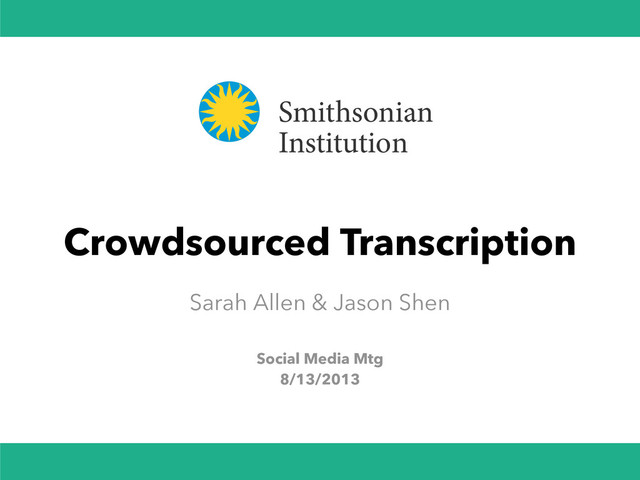 NMNH, NMAH-Archives and others. Early focus has been on full-text transcription of handwritten letters, diaries, manuscripts Already have hundreds of volunteers who have made thousands of transcription edits in the past few weeks. Early progress: