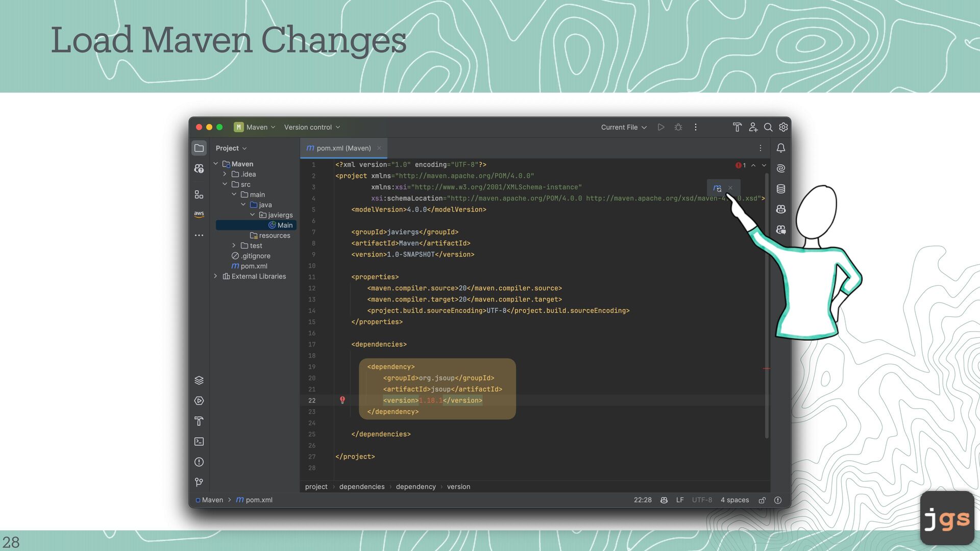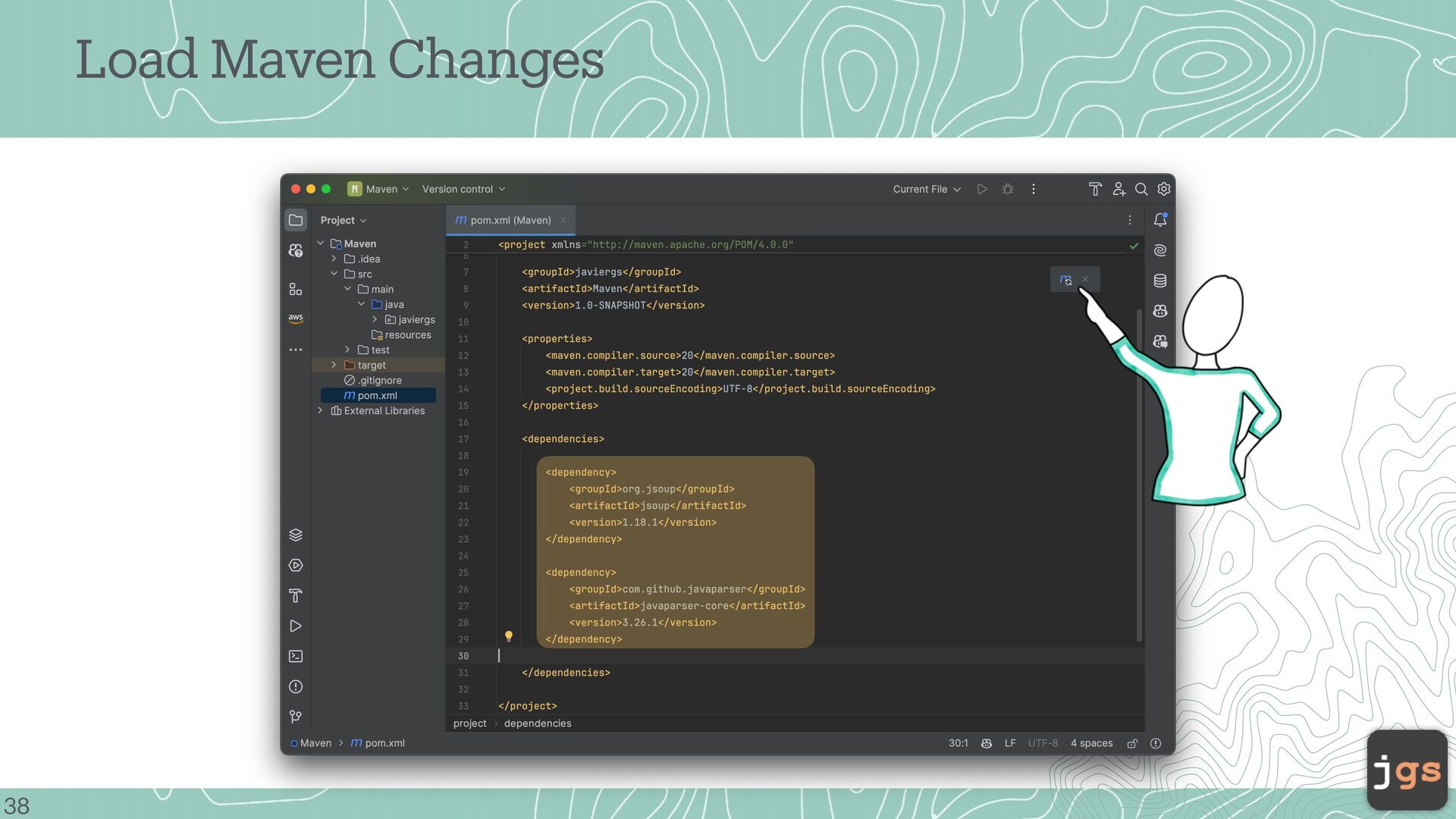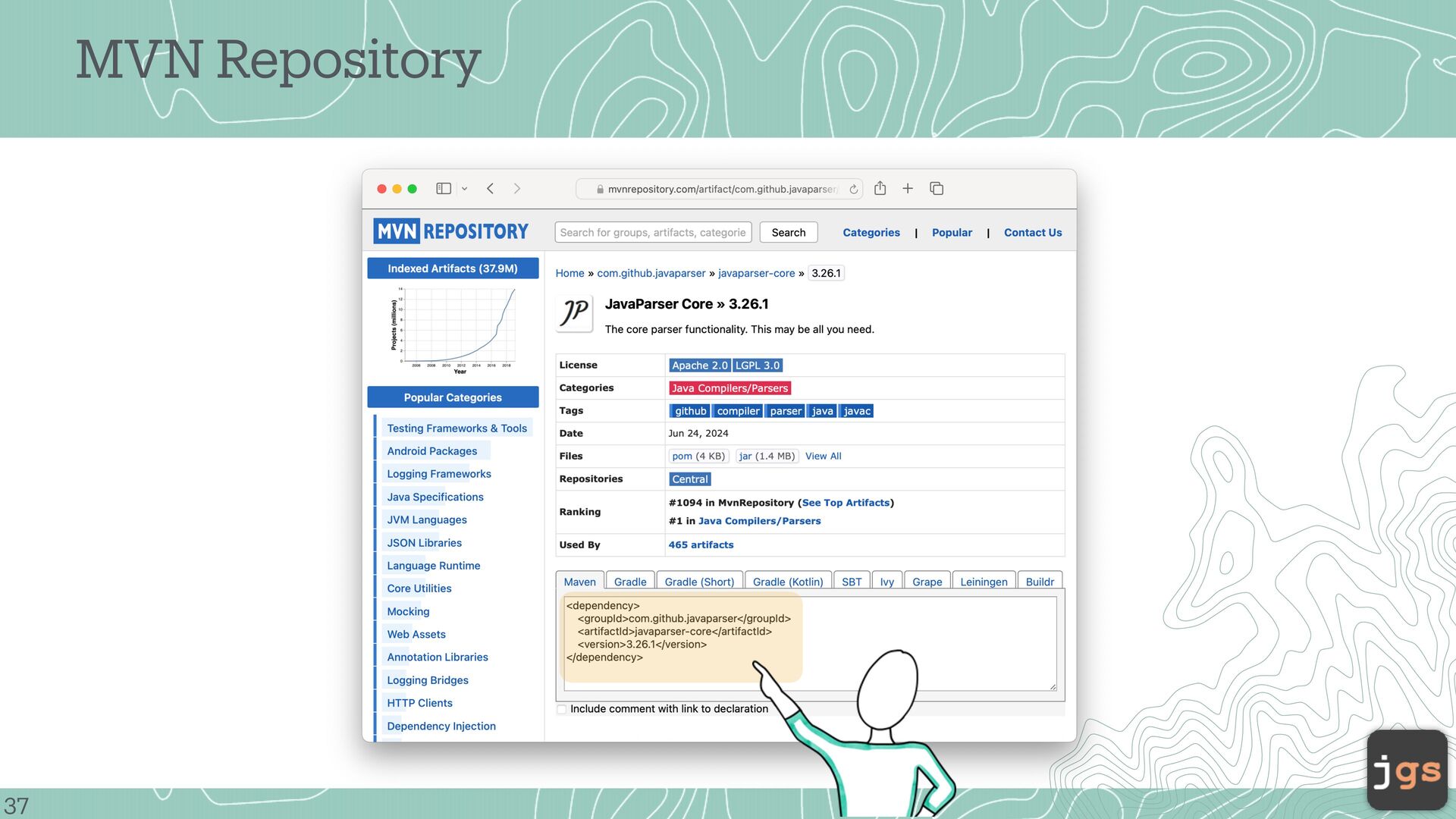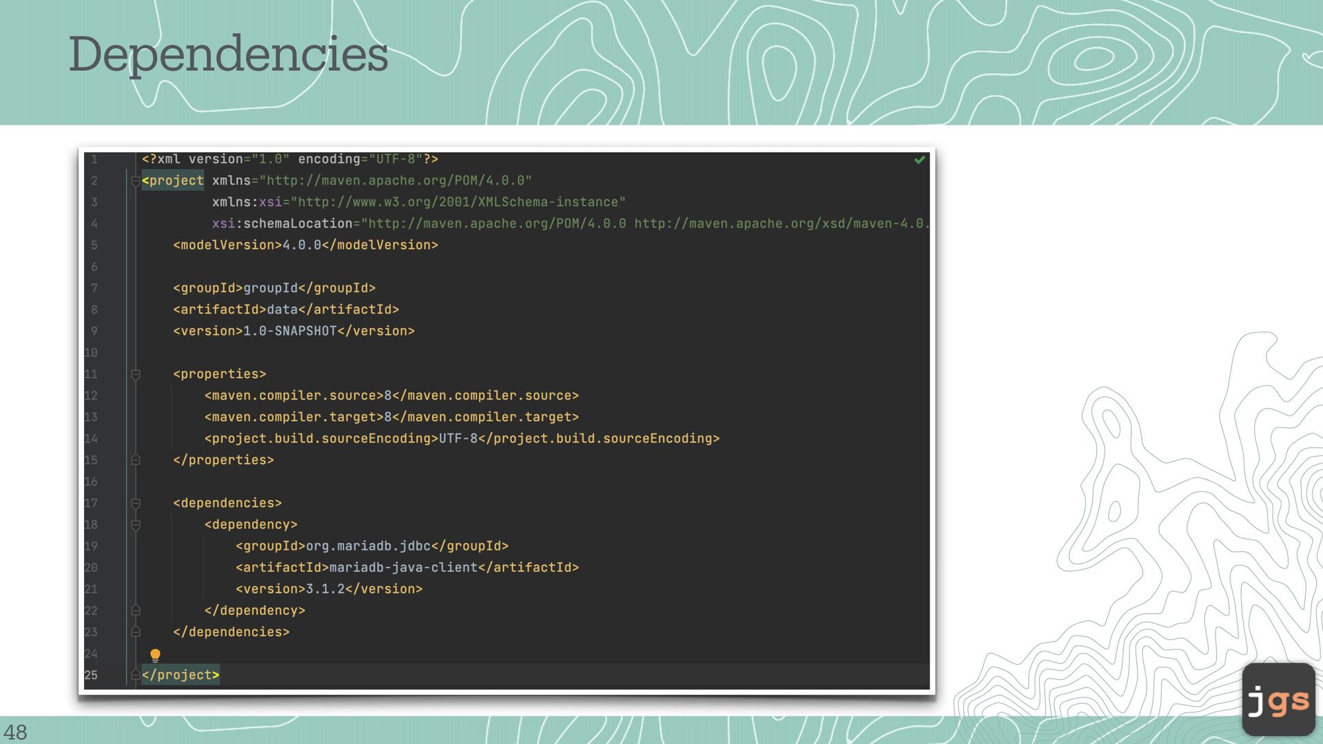 a ven a utom a tes dependency m a n a gement by a utom a tic a lly downlo a ding required libr a ries a nd their dependencies, ensuring consistent builds with speci f ied versions. • In contr a st, m a nu a lly downlo a ding JARs is l a bor-intensive a nd error-prone. 7