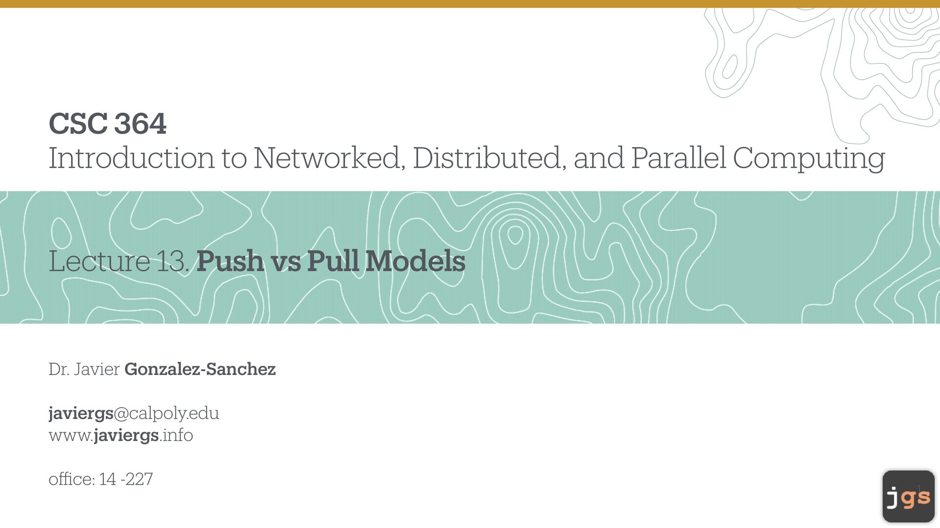 CSC 364 Introduction to Networked, Distributed, and Parallel Computing Lecture 13. Push vs Pull Models 1