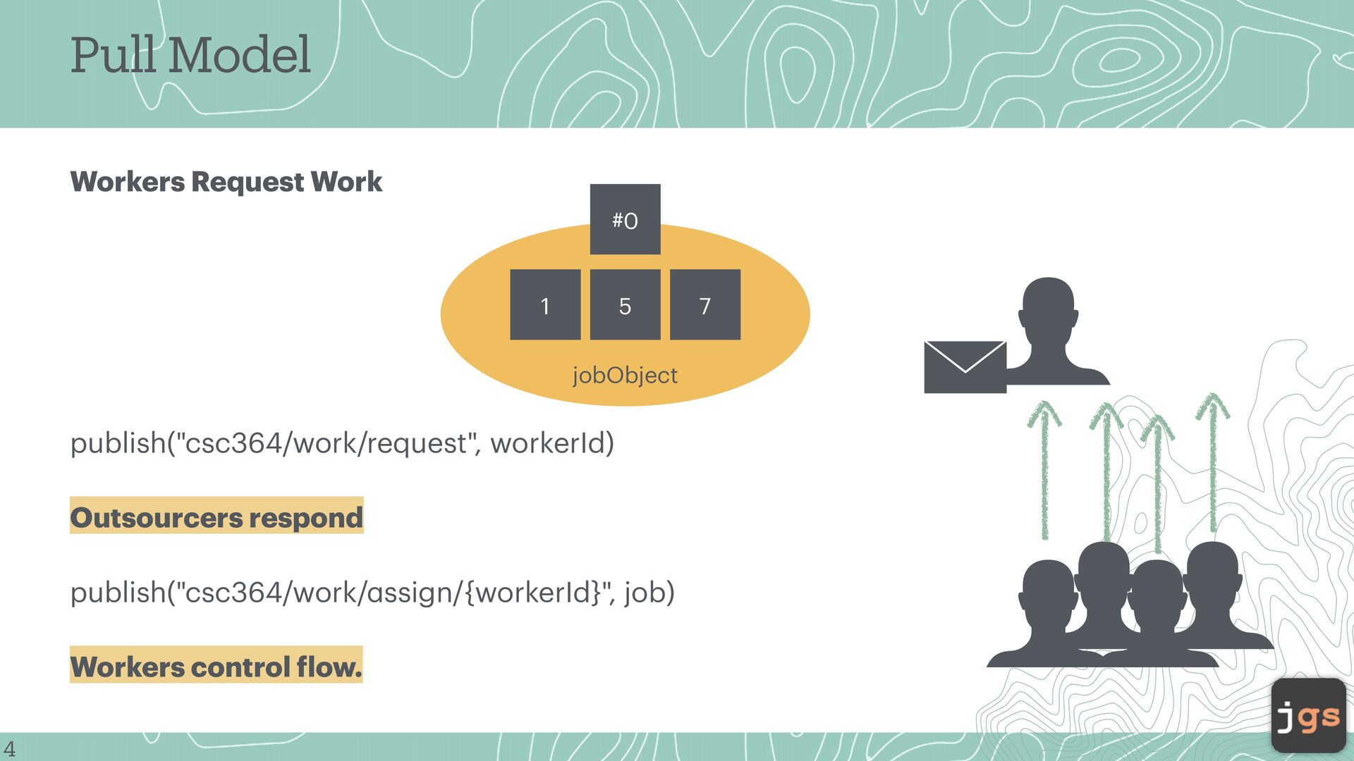 to request topic • M a int a ins intern a l queue • Assigns jobs only when requested 6