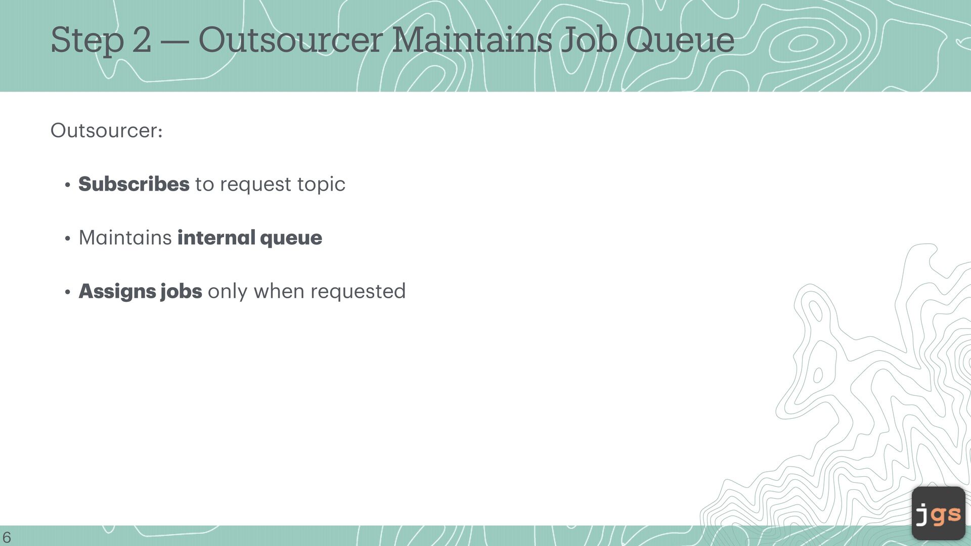 5. Step 2 — Outsourcer Maintains Job Queue Outsourcer: • Subscribes