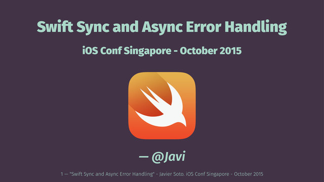 Swift Sync and Async Error Handling. Showing some of the problems with traditional synchronous and asynchronous error handling in Objective-C, and how we can do better in Swift with Result, some kind of Future API, and comparing it with the new Swift 2 throws syntax.